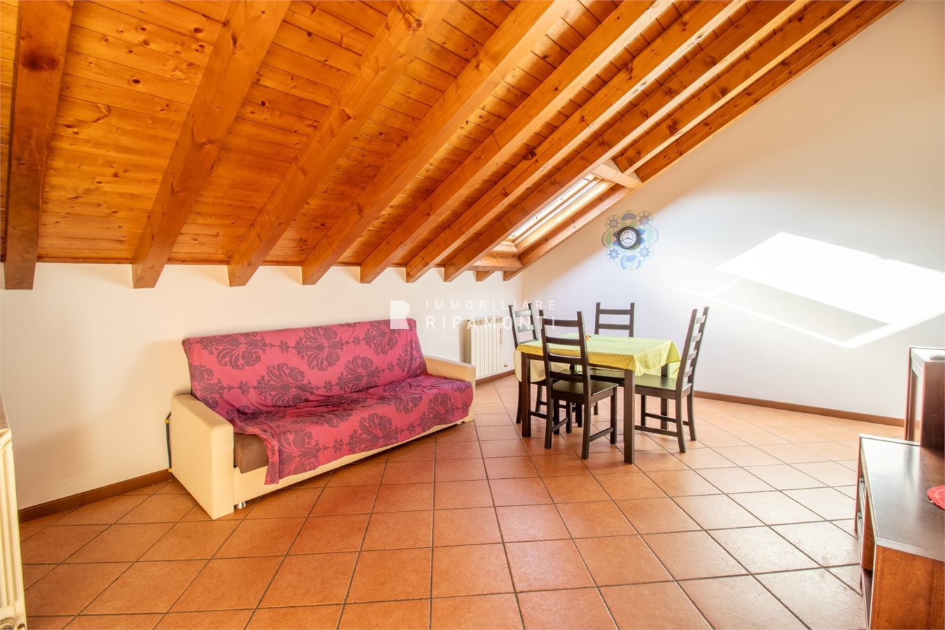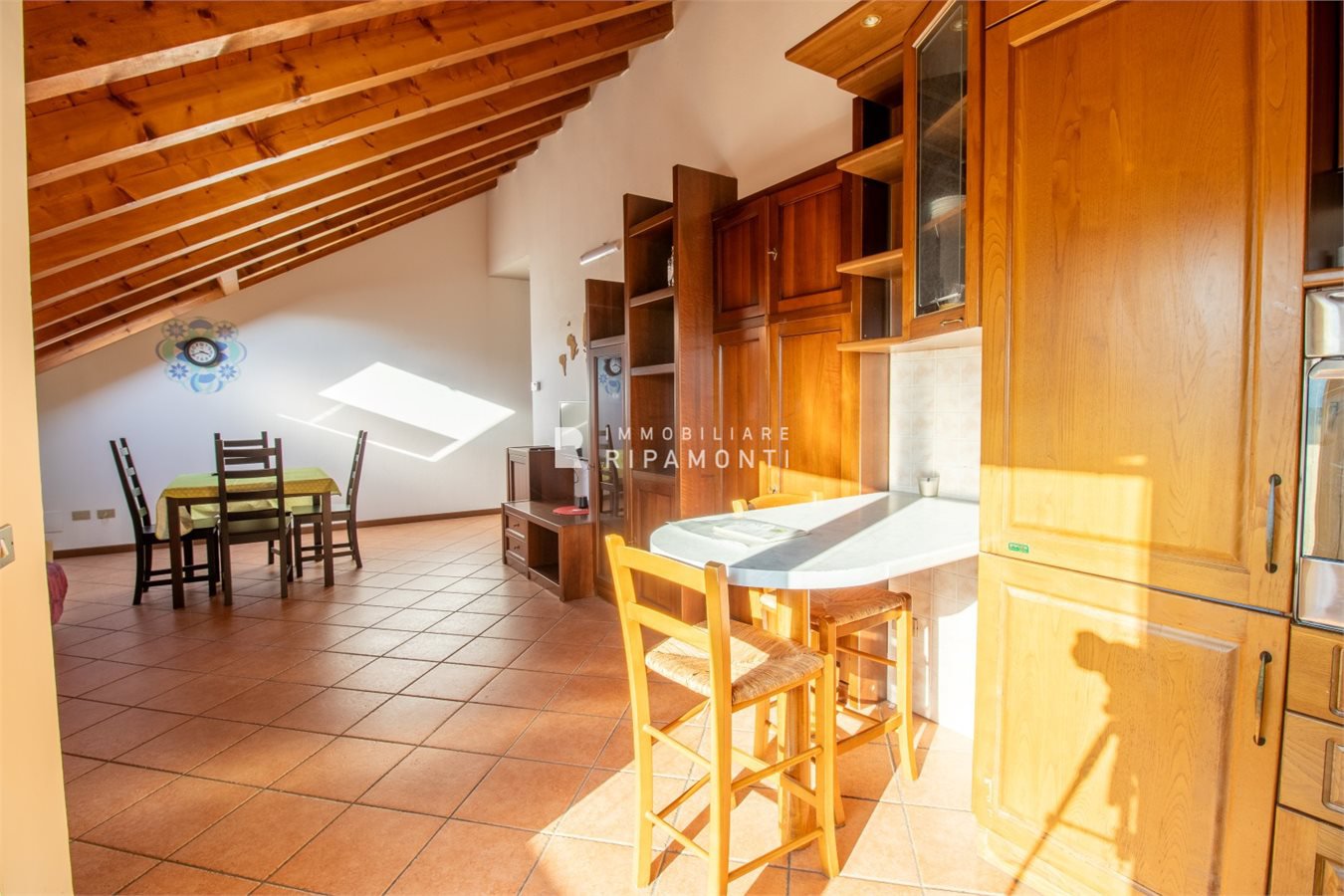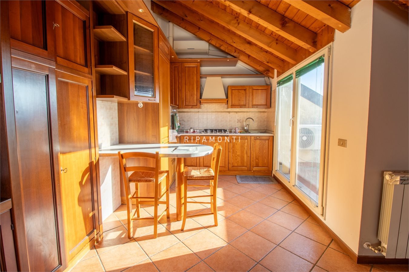 Posto in piccolo contesto residenziale in Via Risorgimento al quinto piano servito da ascensore sino al quarto piano, con soffitti in travi lamellari a vista abitabile su tutta superficie.