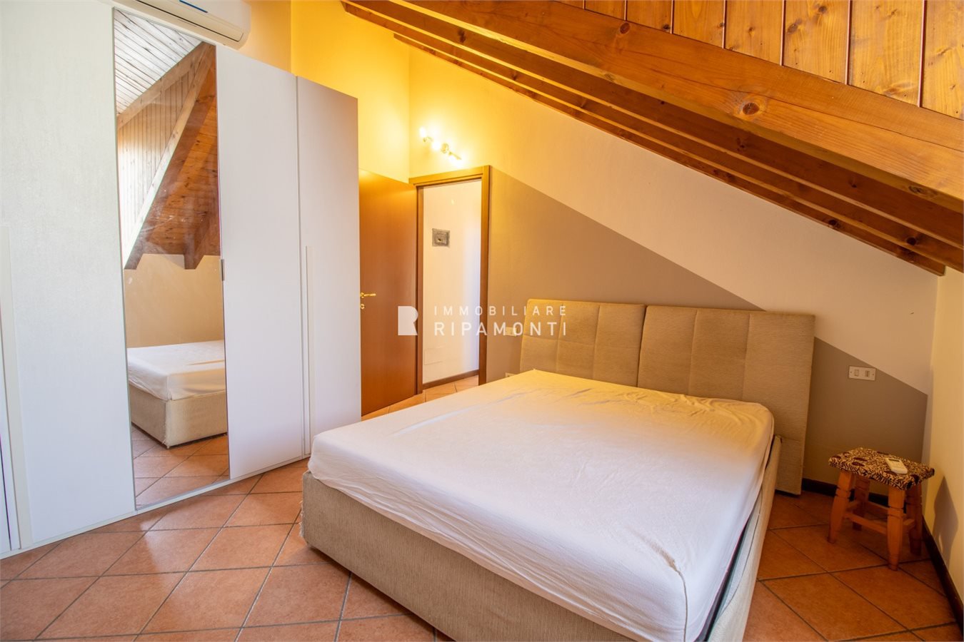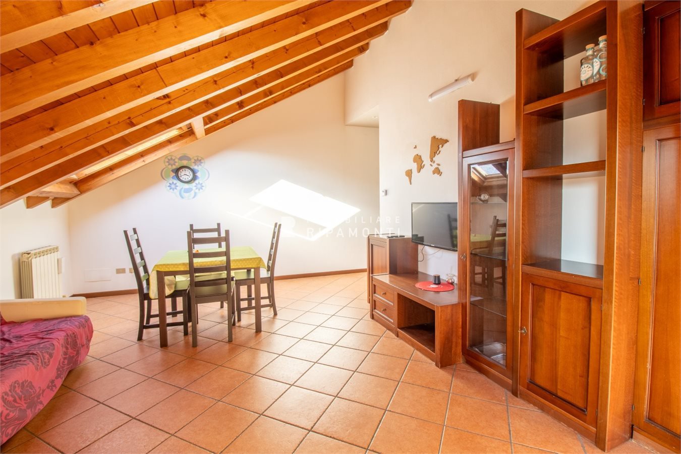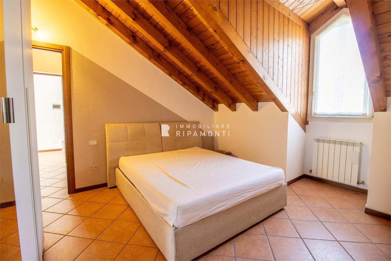 Posto in piccolo contesto residenziale in Via Risorgimento al quinto piano servito da ascensore sino al quarto piano, con soffitti in travi lamellari a vista abitabile su tutta superficie.