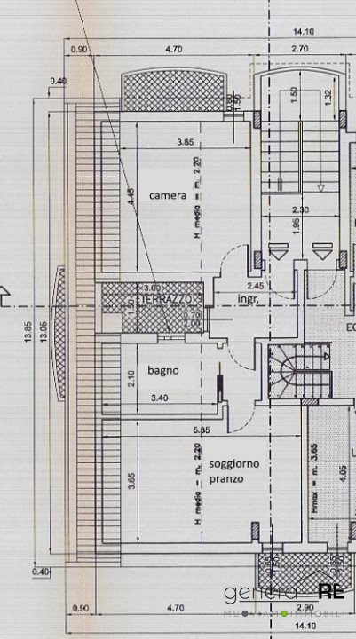 L'appartamento sviluppa una superficie di circa 76 mq ed è composto da un ingresso che conduce ad un soggiorno/pranzo, un bagno, una camera da letto, ed un piccolo balcone.