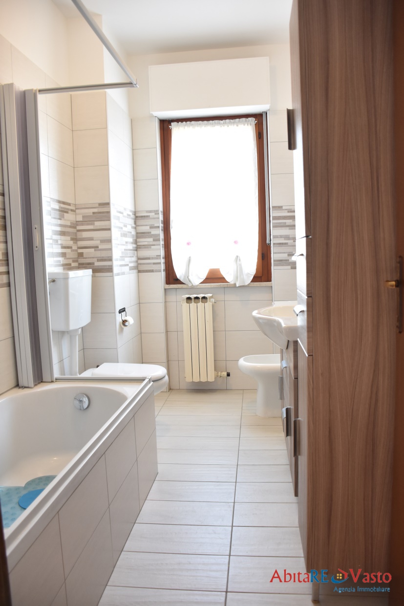 Vasto, Via Casetta. In zona ottimamente servita, all'interno di una piccola palazzina, proponiamo in locazione per contratti transitori tra Settembre e Giugno, un appartamento di circa 90 mq, al 2° piano, ben arredato e cosė composto: ingresso, comodo salone, cucina abitabile con veranda vista mare, 2 camere da letto, doppi servizi, di cui 1 ristrutturato recentemente con vasca e 2 balconi. Riscaldamento autonomo, dotato di : Smart TV, lavatrice, ventilatori, climatizzatore portatile (solo in cucina), autoclave e 1 posto auto esterno. Disponibile solo per contratti stagionali. Condominio servito da ascensore. - Maggiori Dettagli: Vista Mare, Cucina Abitabile, Doppio servizio