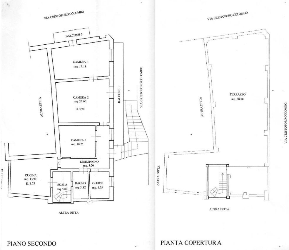 L'appartamento è ubicato al secondo ed ultimo piano ed ha una superficie di circa mq 90 calpestabili. Come copertura a tetto troviamo una stupenda terrazza di circa mq 90 con comodo accesso oltre che un ampio balcone a livello dell'abitazione.