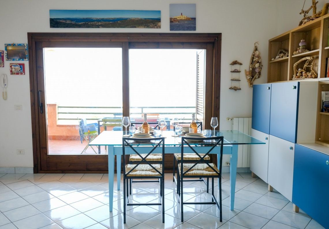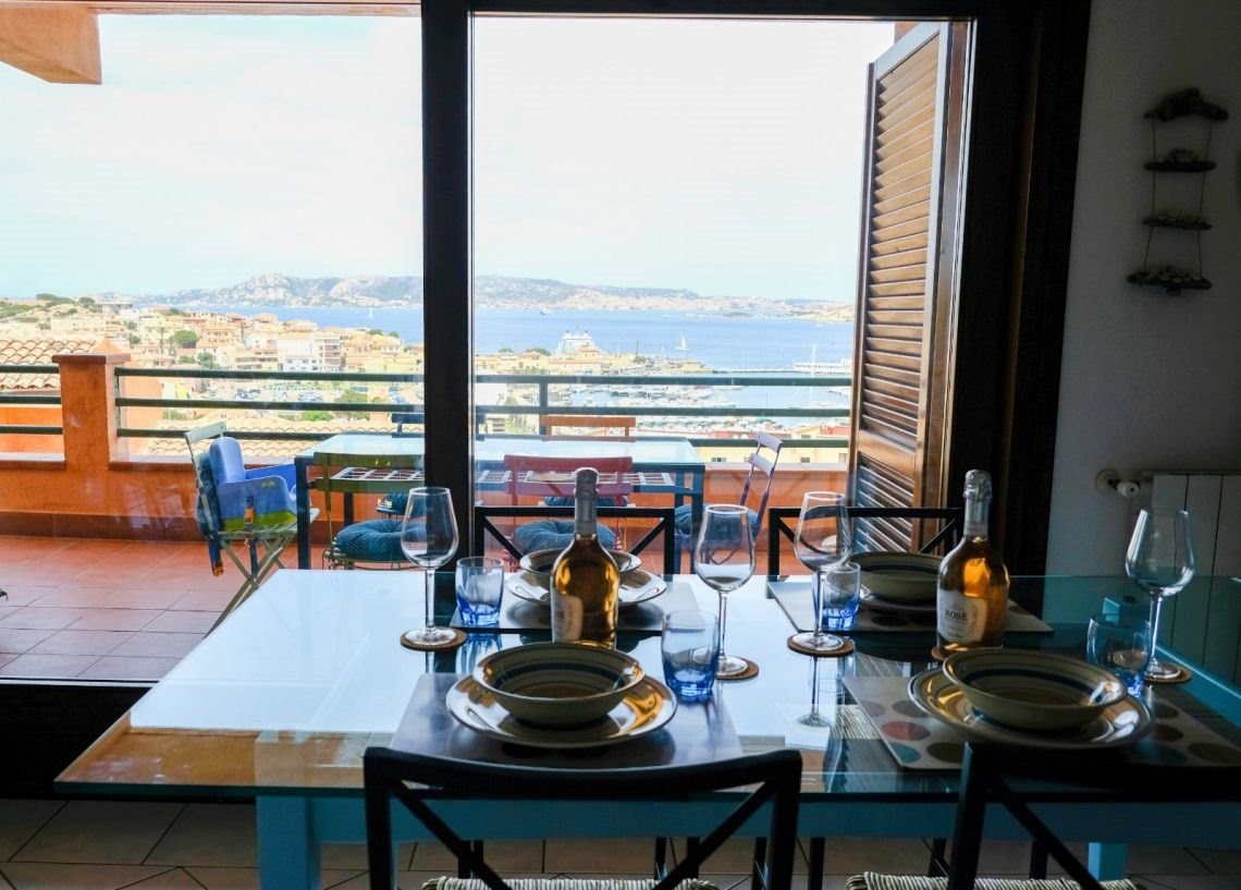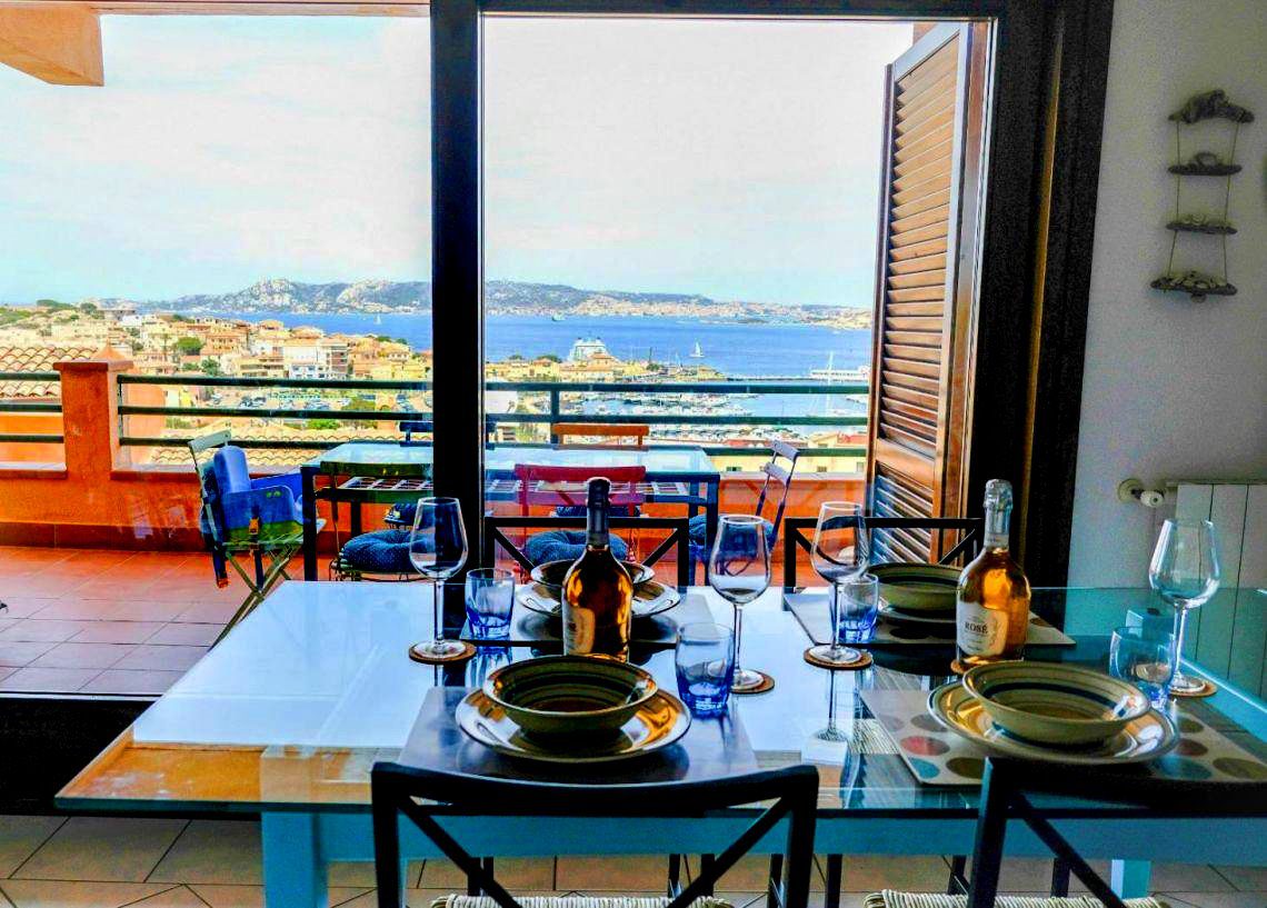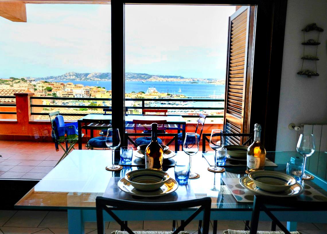 Appartamento in splendido condominio fiorito e curato posto al comodo piano primo con ingresso indipendente dal terrazzo, da cui si gode di una incredibile vista a 180° che spazia dalla Roccia dell'Orso alla Fortezza di Monte Altura ed abbraccia tutto l'Arcipelago della Maddalena.