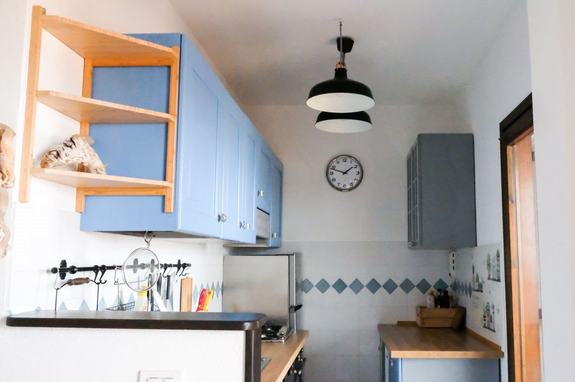 L'ampio angolo cottura, completo di frigorifero nuovo, forno e lavastoviglie affaccia anch'esso sulla terrazza tramite una porta finestra.