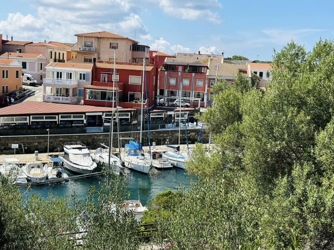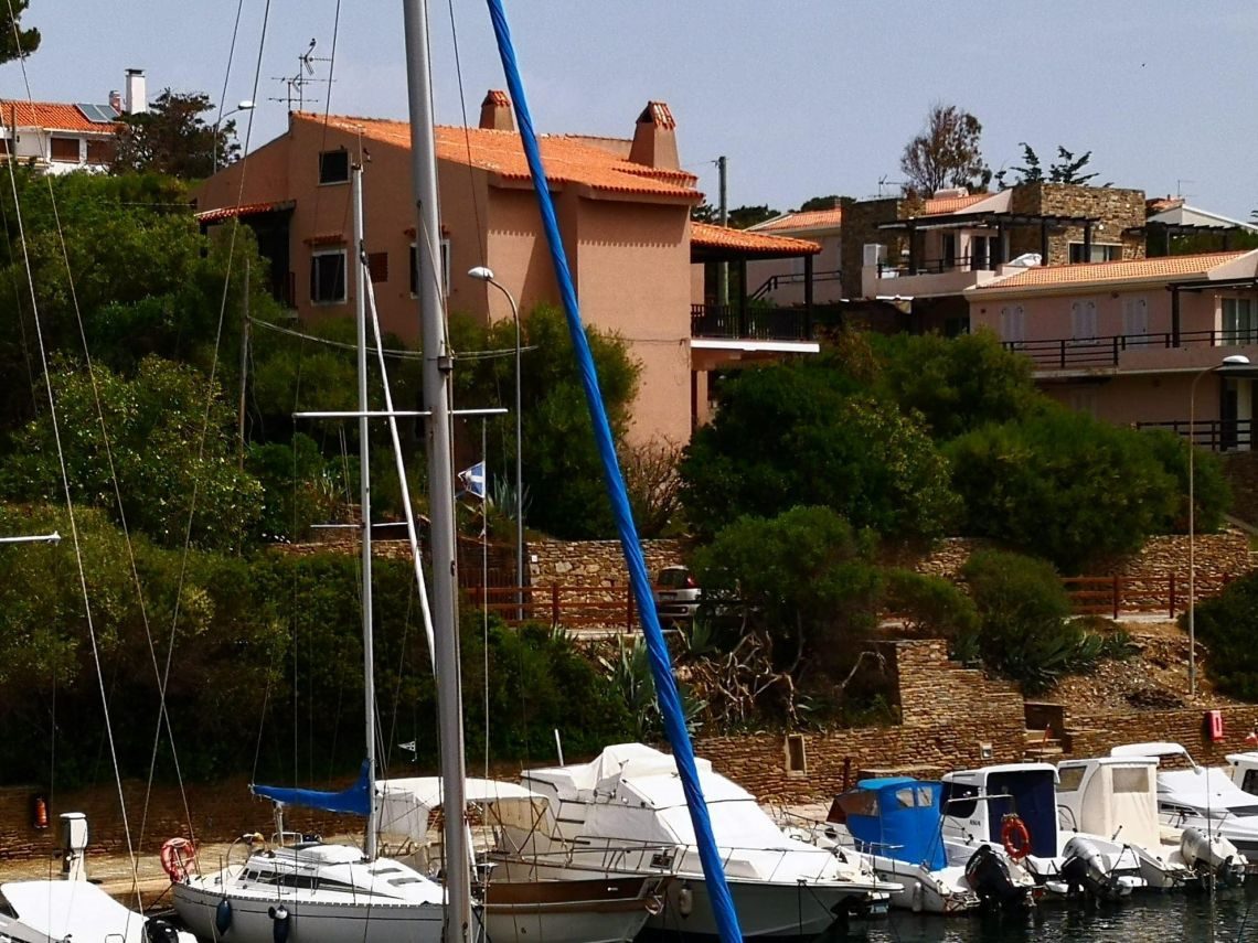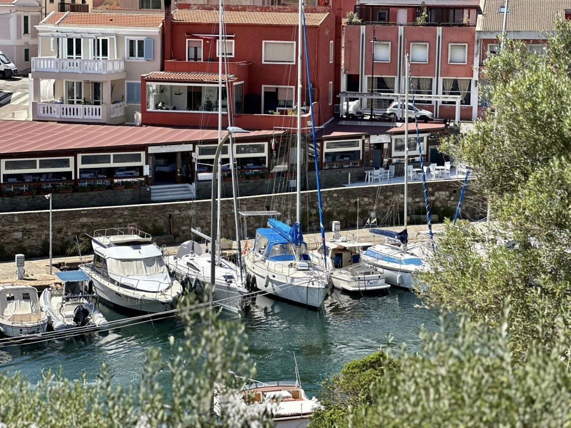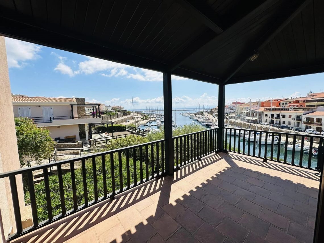 piano primo con un luminosissimo living con soggiorno e cucina abitabile che si affacciano sulla terrazza coperta di mq 30 con incantevole vista mare sul porto e sul villaggio, una camera matrimoniale, un disimpegno e il bagno.