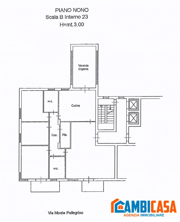VIA MONTEPELLEGRINO In via Montepellegrino a Palermo in edificio dei primi anni '80 con servizio di portineria e 2 ascensori per ogni scala. Luminoso e panoramico 9° piano - oltre 2 piani ammezzati - di 165 mq commerciali con tripla esposizione, disposizione interna moderna e funzionale. Ingresso accogliente con porta blindata che immette subito al salone di rappresentanza con balcone sul prospetto principale. Il salone è comunicante con la cucina abitabile, caratterizzata da 2 punti luce e l'accesso al terrazzo verandato di 18,56 mq regolarmente catastato con vista a 360 gradi, dal monte Pellegrino fino al mare. La zona notte è composta da una camera matrimoniale con balcone e due camere singole con finestra. Gli ambienti sono completati da due bagni con finestra, uno dotato di vasca e l'altro di doccia, e un ampio ripostiglio per ottimizzare gli spazi. La casa si presenta in buono stato con infissi in alluminio con vetri camera, e riscaldamento autonomo con caldaia BOSCH recentemente installata. Situato in una zona ben servita e ottimamente collegata, a pochi metri dalla fermata della metropolitana e servito da attività commerciali di ogni genere.