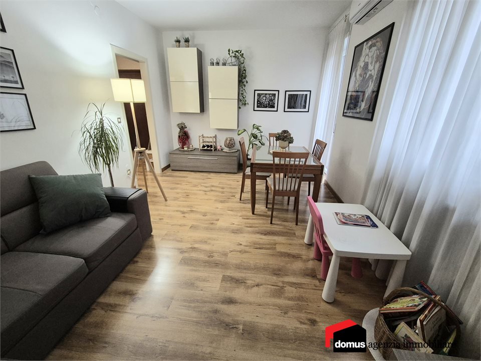 Gli ambienti risultano curati, molto luminosi e ben distribuiti; la presenza di un vero e proprio ingresso arredato con armadio e la separazione tra la cucina-pranzo e il salotto-Tv donano un'ottima vivibilità agli spazi interni della zona giorno. Non è da meno la zona notte che ospita due camere dalle dimensioni generose e confortevoli. L'appartamento è stato recentemente ristrutturato (rifatti i pavimenti, serramenti, caldaia, clima e bagno) pertanto è veramente pronto all'uso. L'edificio che lo ospita appare curato e ben conservato, oltre che posizionato in un quartiere che offre servizi e negozi proprio sotto casa. Anche il centro storico è comodamente raggiungibile a piedi. Le spese condominiali sono davvero contenute.
