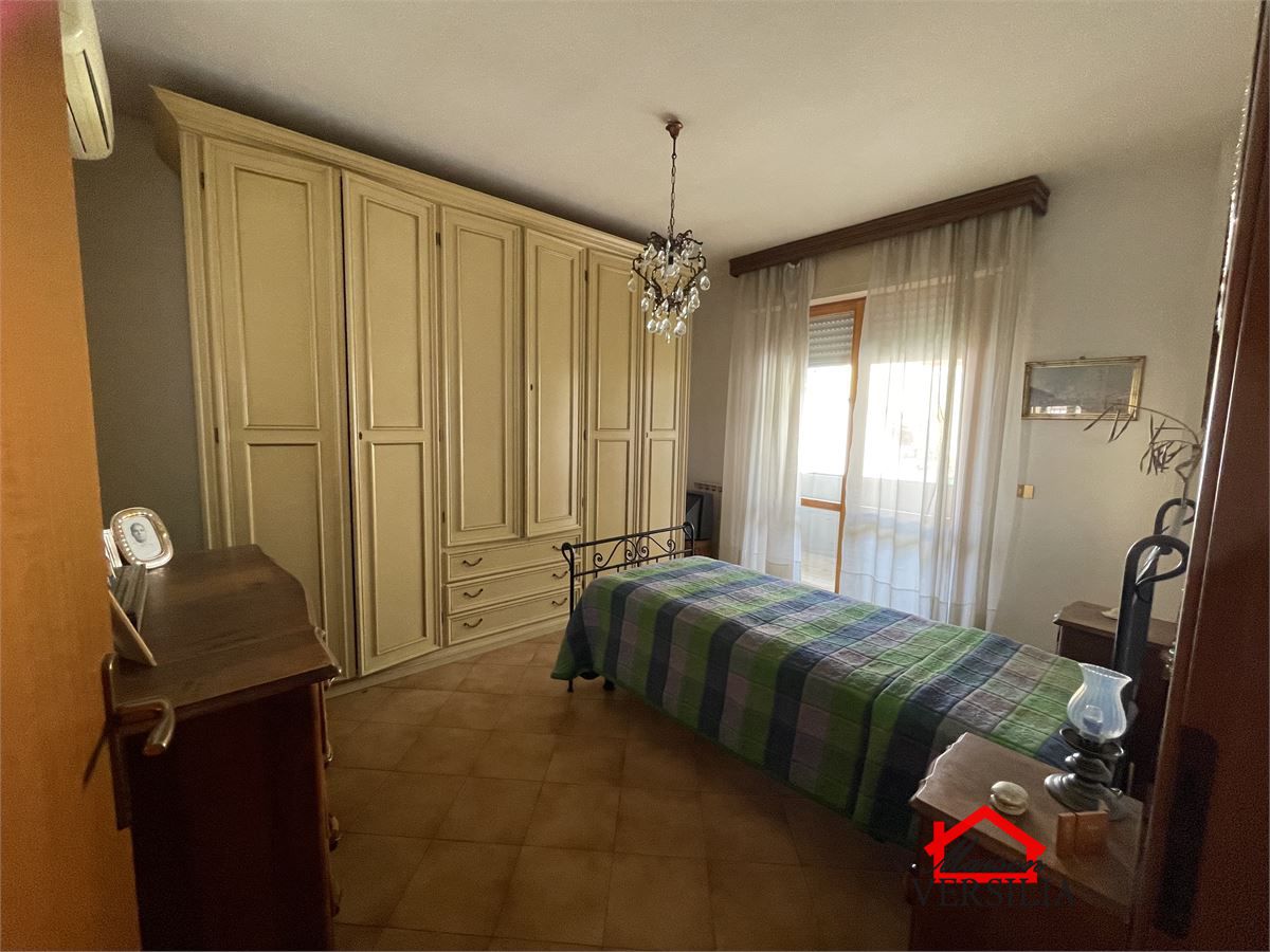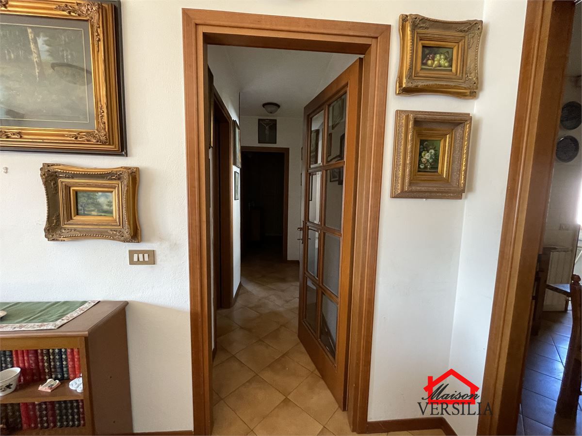 Internamente si compone di ingresso in ampio soggiorno dal quale si accede a terrazzo lato mare, cucina abitabile (anch'essa con accesso a terrazzo vista colline), due camere matrimoniali (che affacciano sul terrazzo),stanza studio, ripostiglio, bagno con vasca.