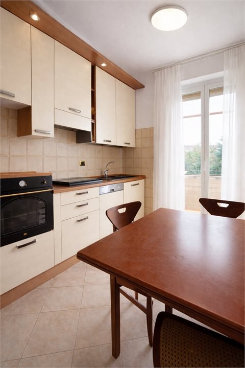 L'immobile si compone di tre spaziose camere da letto, di cui due di dimensioni maggiori (stanze doppie), una con affaccio su balcone, cucina abitabile e bagno finestrato.