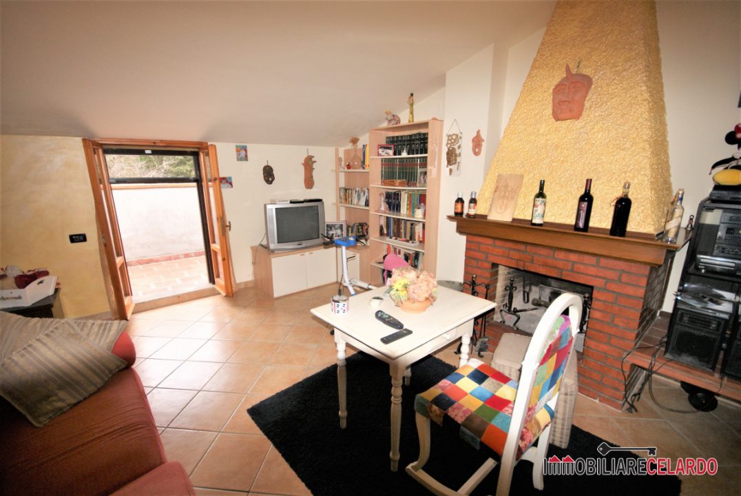 L'accesso è da scala esterna condominiale. Al piano secondo troviamo soggiorno/pranzo con cucinotto, camera matrimoniale, camera doppia e bagno (tot. 77 mq). Attraverso scala interna si arriva al piano superiore occupato per intero da un'ampia mansarda con caminetto e terrazza.