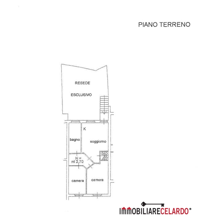 al piano terra soggiorno, due camere, bagno e resede privato di mq 52