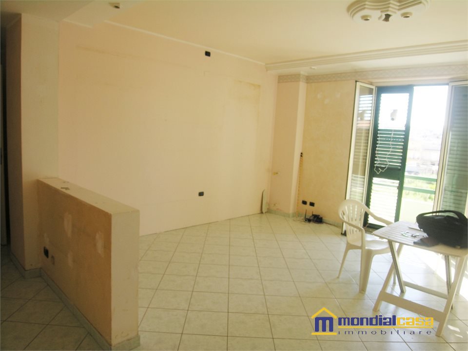 Appartamento a secondo piano di un edificio con solo sei appartamenti, l'appartamento si trova in condizioni quasi abitabile da subito, ingresso unico su spazioso soggiorno, ambiente cucina di comode dimensioni, disimpegno che separa dalla zona giorno ben due camere da letto, oltre alla camera matrimoniale, bagno, doppio servizio/lavanderia ed in fine un'utile ripostiglio; come si può ben vedere l'appartamento gode di ben quattro comodi balconi, su tutti gli ambienti ed è munito di impianto di riscaldamento con termosifoni (manca solo la caldaia).. Compreso nella vendita un garage indipendente ed inoltre di rimpetto anche una cantina, entrambi di pertinenza esclusiva, questi al piano seminterrato dell'edificio, con accesso dallo spazio di manovra munito di serranda automatizzata. Comoda soluzione in un bel contesto, adornato di verde e parcheggi, in zona viale A.Moro servita in pieno, con scuole, e le più svariate attività commerciali. - Maggiori Dettagli: Porta blindata, Cucina Abitabile