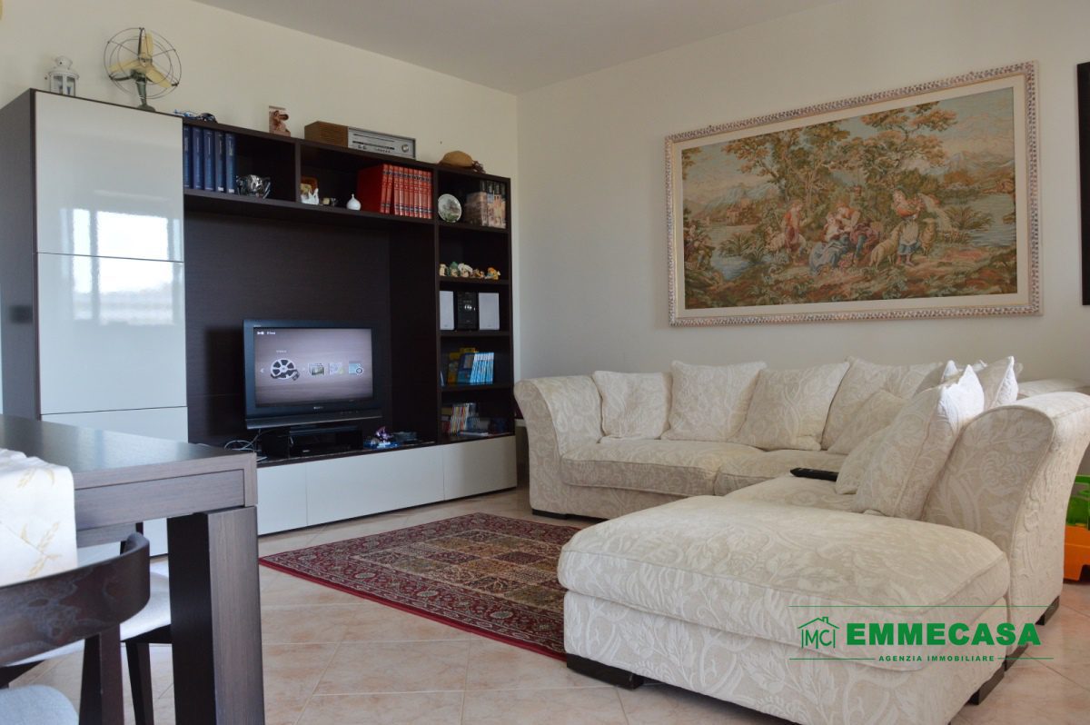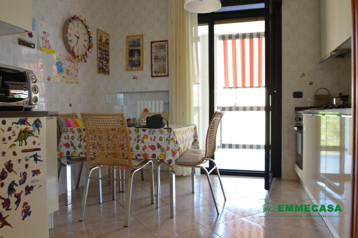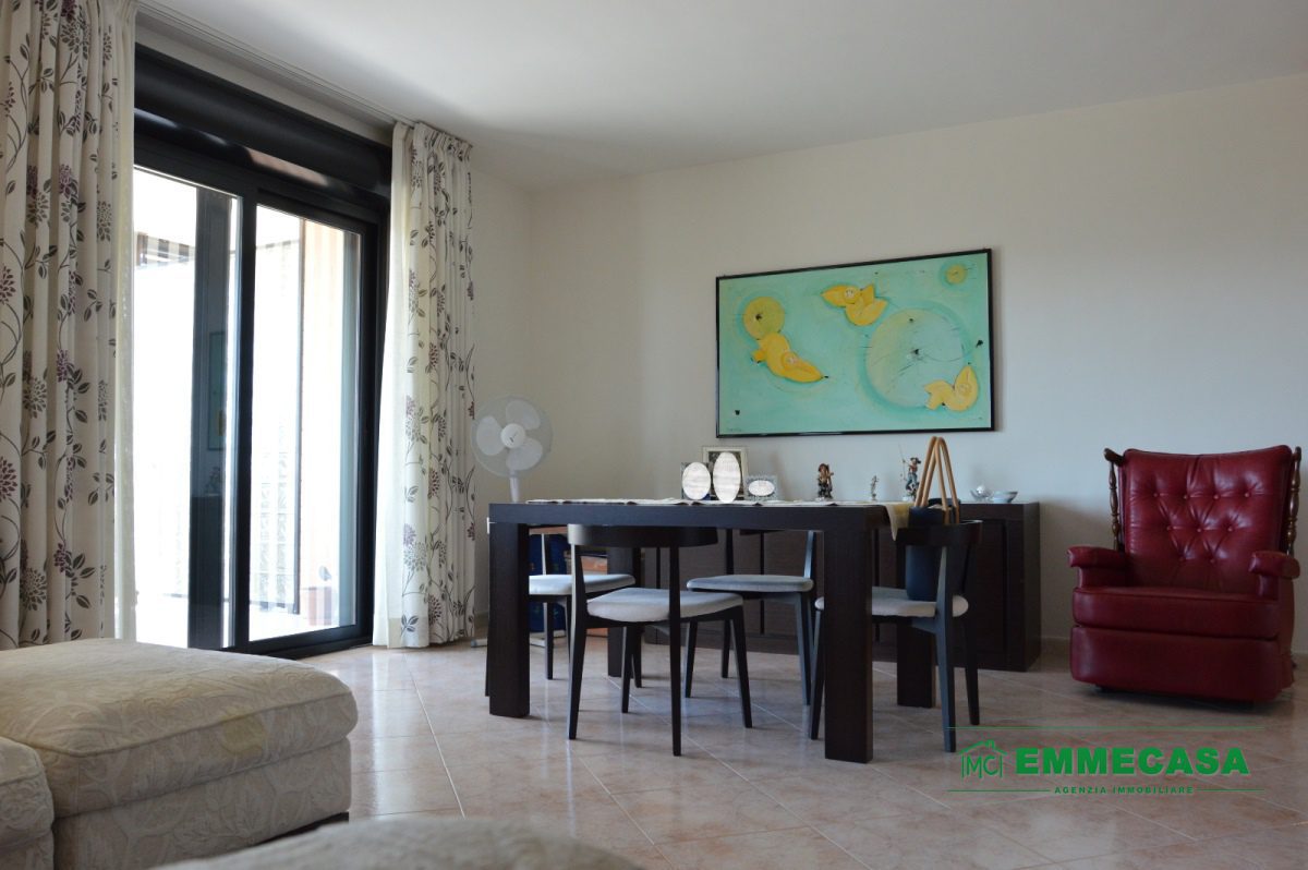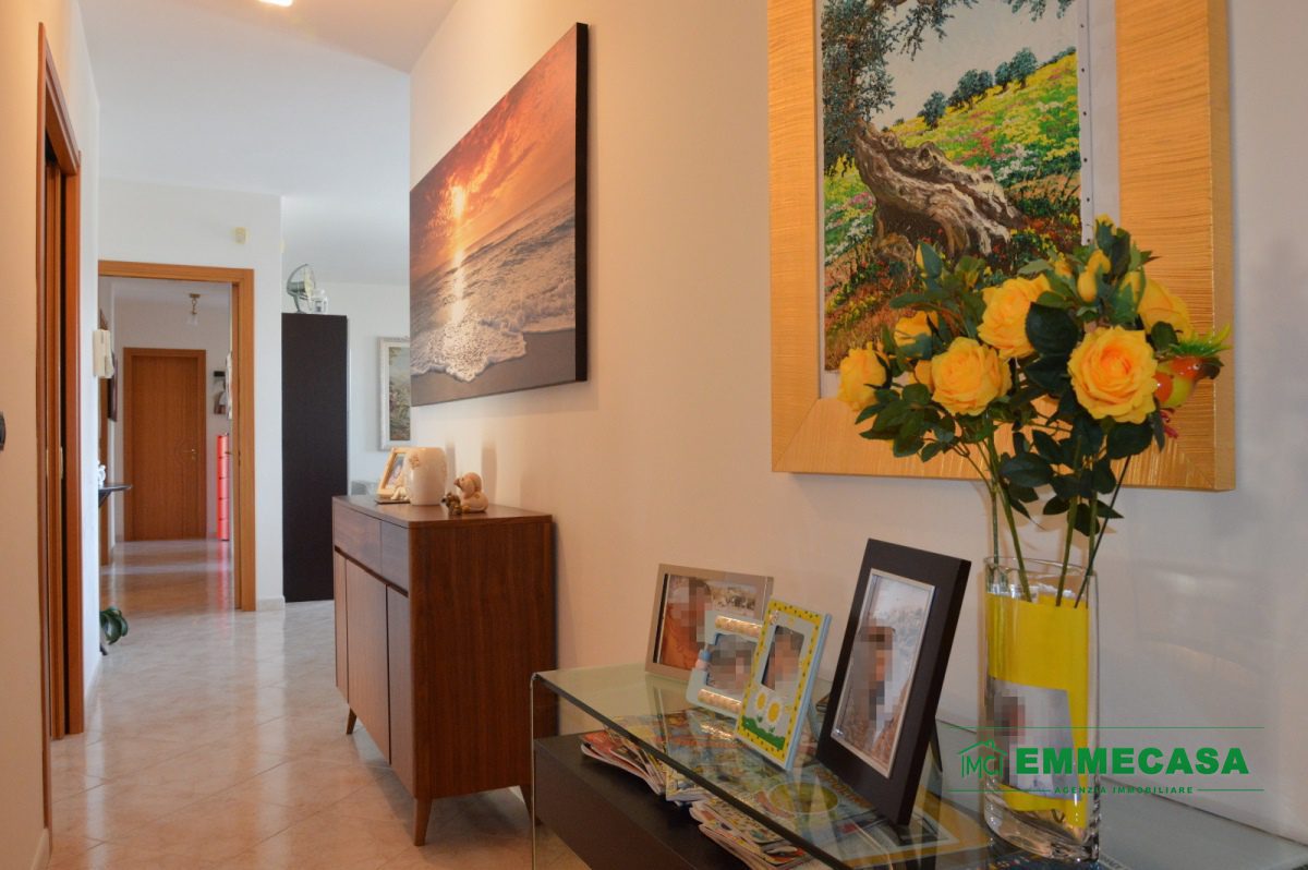 La magione, dalle metrature importanti, è situata al piano intermedio in stabile con ascensore, copre una superficie di 135. mq.e si sviluppa al suo interno come segue. Dalla porta d'ingresso si accede ad un grazioso disimpegno che apre sul grande salone a vista ed alla cucina abitabile. Un ulteriore disimpegno separa la zona giorno dalla zona notte dove vi sono la camera matrimoniale, due camerette, bagno padronale con vasca a spicchio e bagno di servizio. L'appartamento ha doppia esposizione, è munito di comodo ripostiglio e di due ampi balconi di 66 mq. complessivi entrambi con tende da sole. L'interno si presenta in ottimo stato, la porta d'ingresso è blindata, il pavimento è in ceramica, gli infissi sono in vetrocamera, vi sono le zanzariere, il videocitofono e la predisposizione per l'impianto di allarme. € 195.000 Possibilità di box auto 25 mq. € 20.000,00