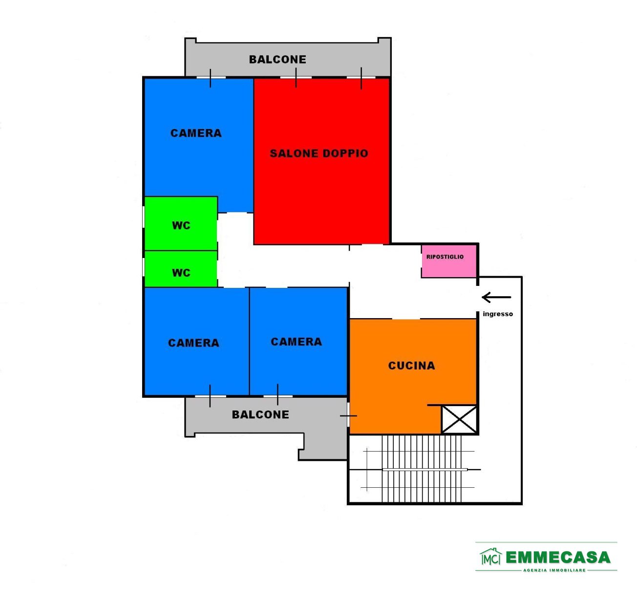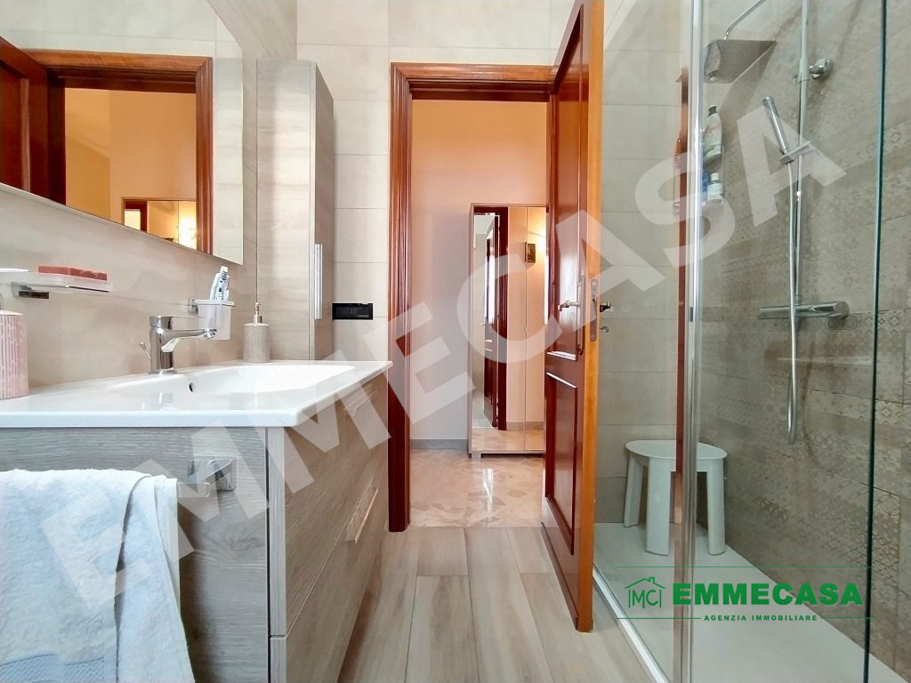 A suo interno si compone di ingresso su disimpegno, salone doppio, cucina abitabile, camera matrimoniale, due ampie camerette, doppi servizi e ripostiglio.