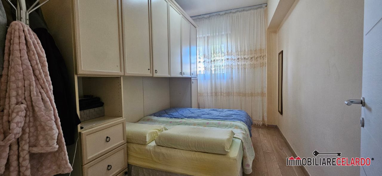 luminoso soggiorno, cucina abitabile, due camere, bagno, ripostiglio e ampio disimpegno.
