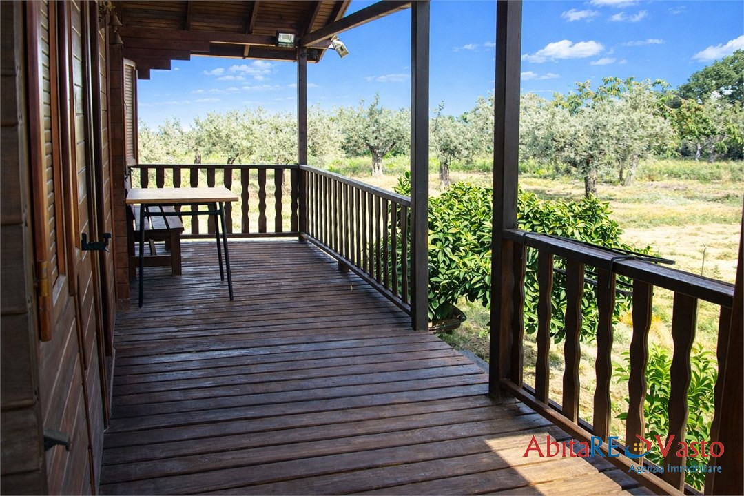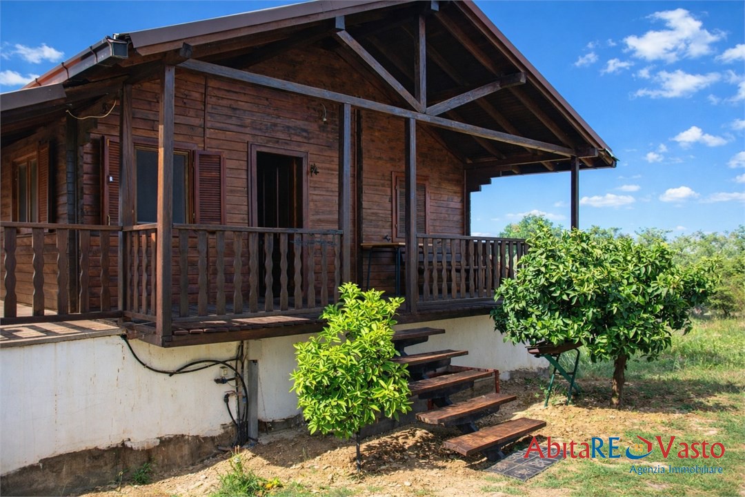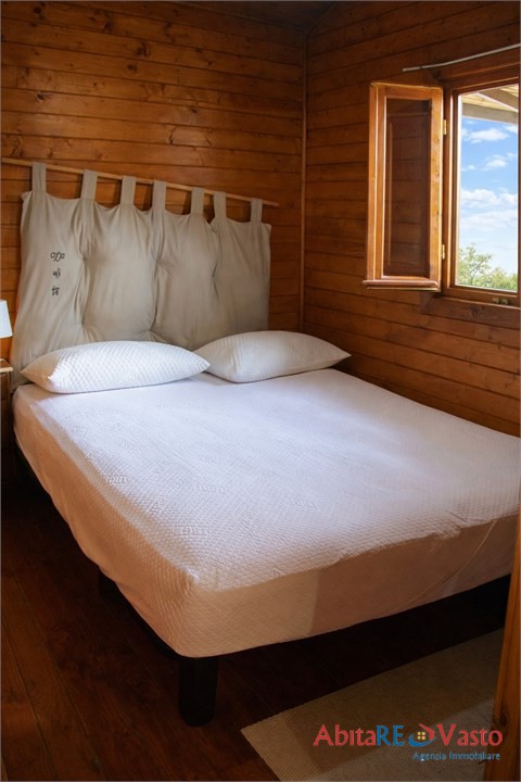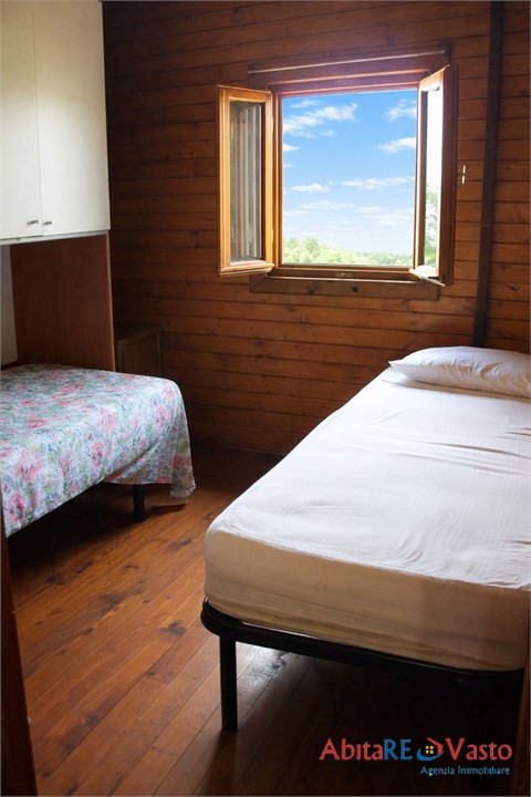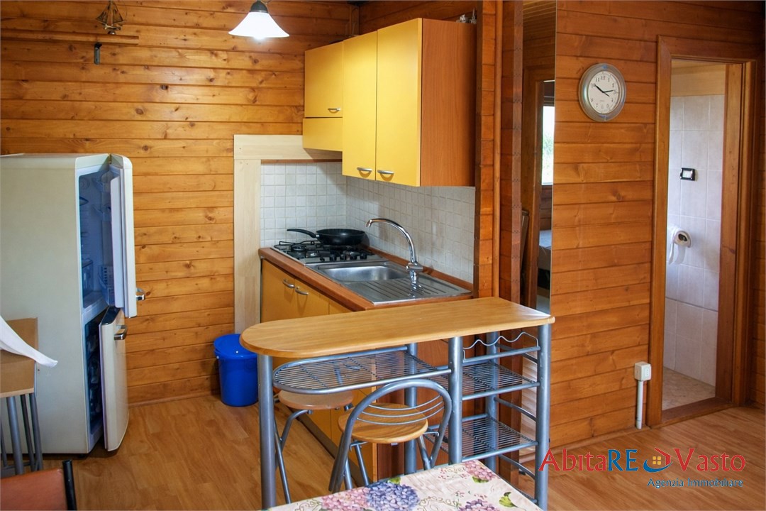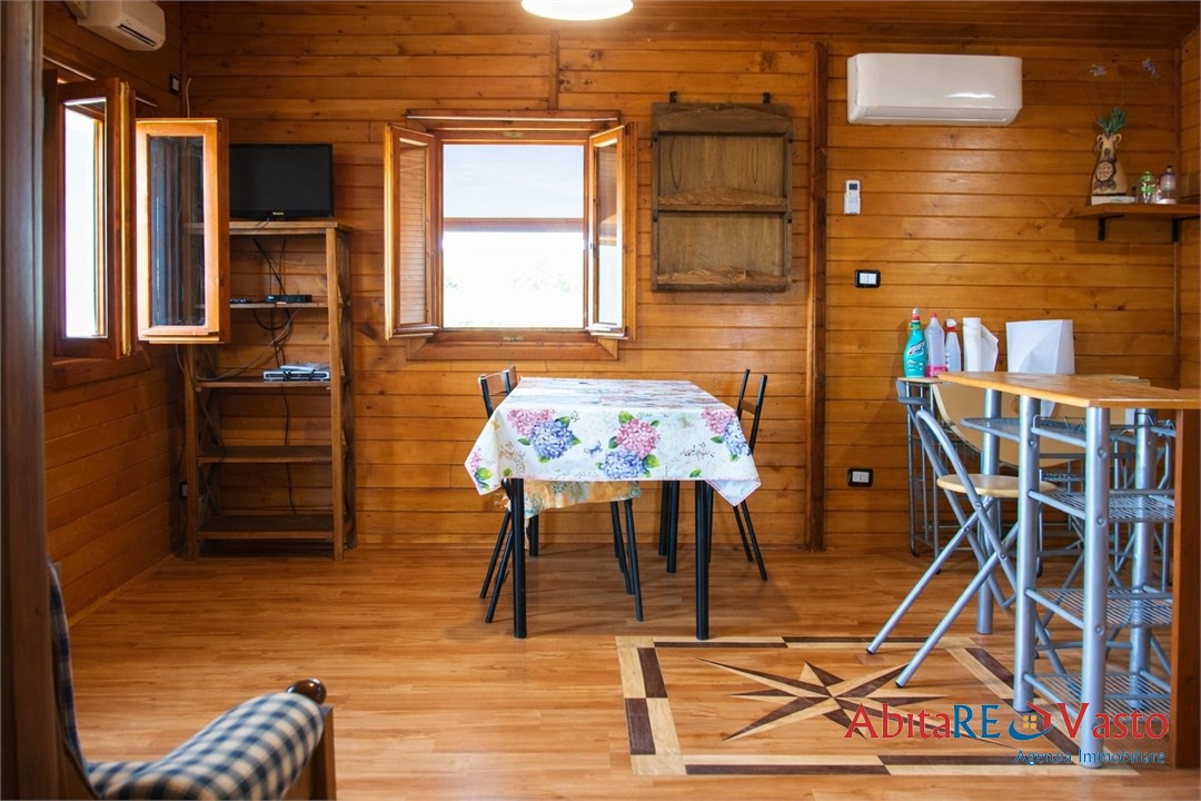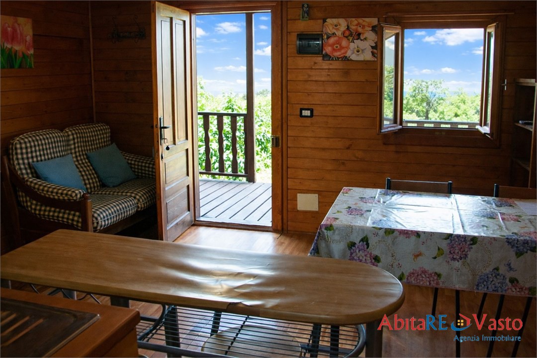 Pollutri (CH). In un piccolo centro poco distante da Vasto, in posizione collinare, a circa 9 km dal mare, lontano dal traffico cittadino e dai rumori del centro abitato, proponiamo in locazione solo per la stagione estiva, un piccolo chalet in legno, ben arredato, indipendente e circondato da un ampio spazio esterno, così composto: zona living con angolo cucina, 2 camere da letto, piccolo bagno con doccia e comoda veranda esterna attrezzata. Libera per chi predilige soggiorno e/o una vacanza a contatto con la natura, con la possibilità di essere in una delle bellissime spiagge della costa dei trabocchi in pochi minuti. Prezzi da concordare in base alla durata del soggiorno. Posti letto max. 4. Ammessi piccoli animali domestici nello spazio circostante.