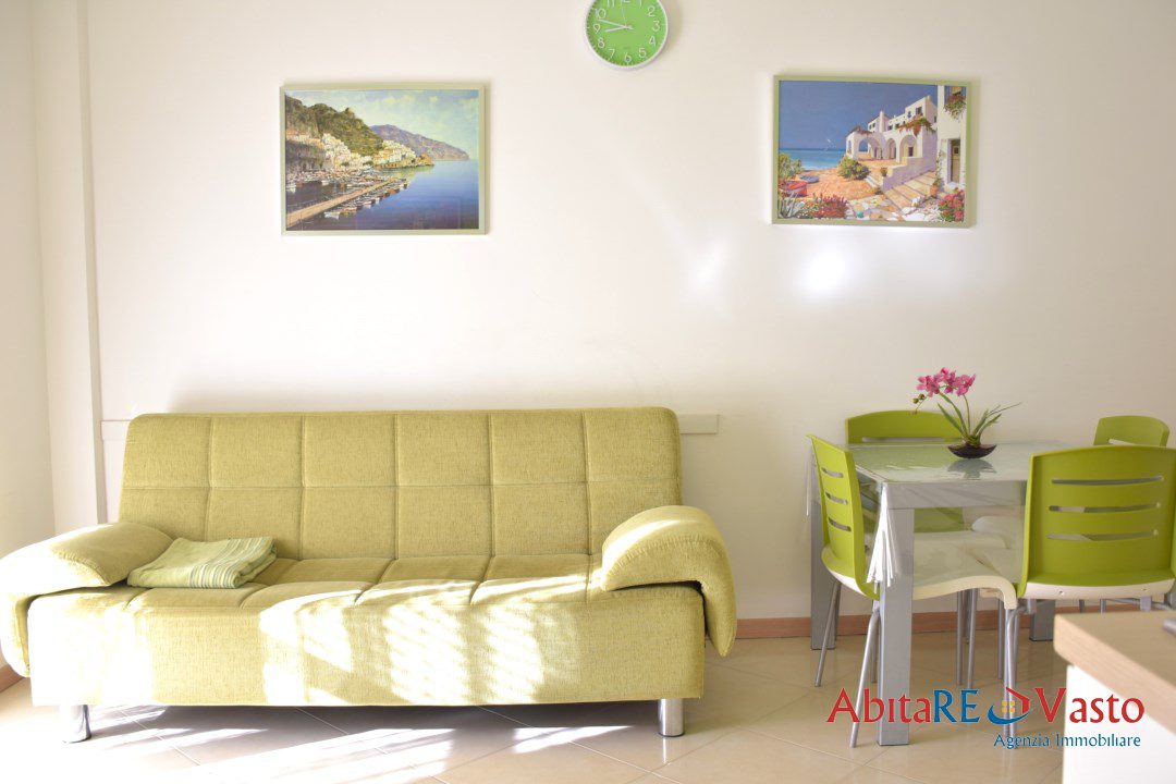 vasto, via socrate. in zona servitissima, all'interno di una palazzina silenziosa e riservata, proponiamo in locazione da aprile a settembre, un appartamento ben arredato, di circa 90 mq, posto al 2° piano e servito da ascensore, composto da ingresso in ampio e luminoso salone, cucina abitabile,…
