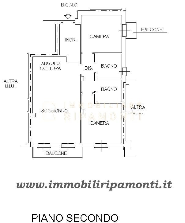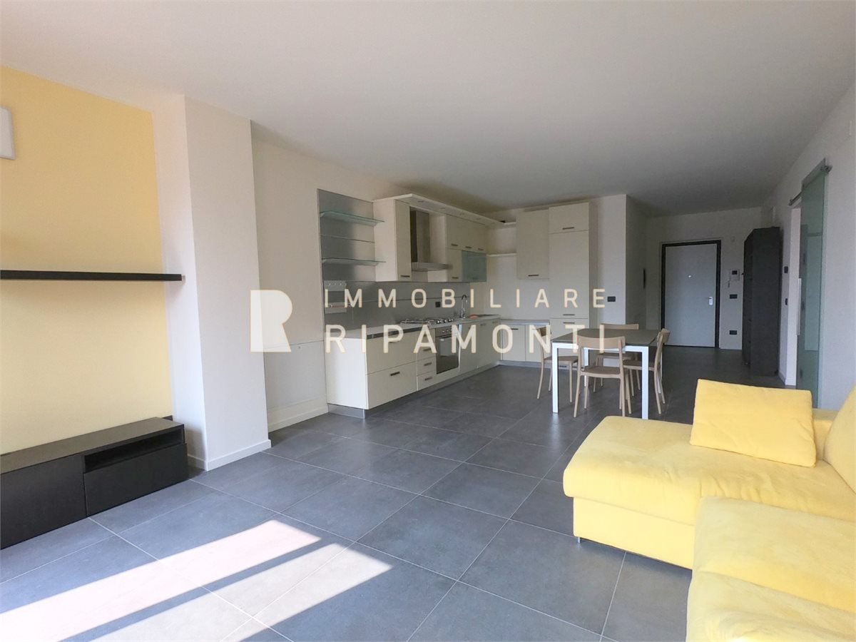 Ampio ingresso, zona living e pranzo affacciata sul panoramico balcone, cucina a vista, disimpegno notte, camera matrimoniale, cameretta con secondo balcone, due bagni e box singolo al piano S1.
