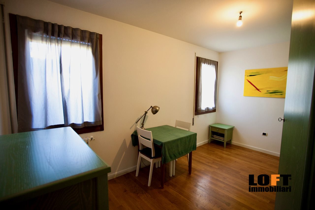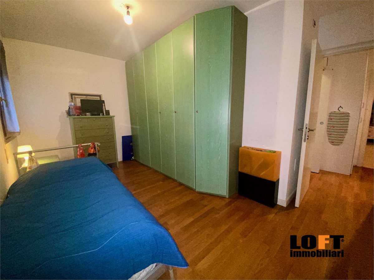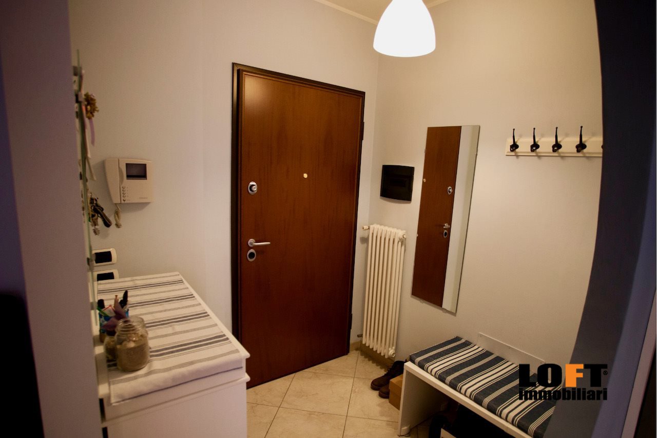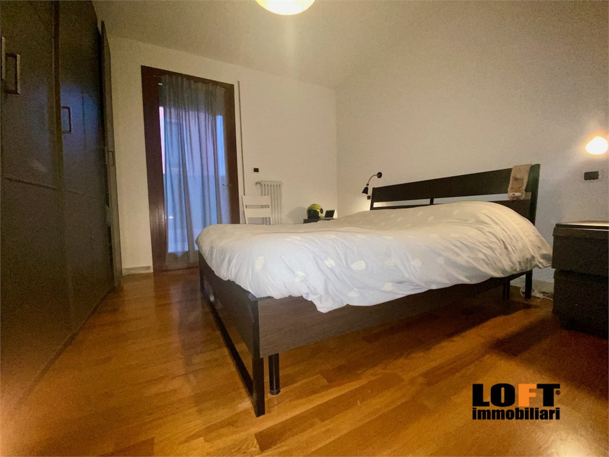 L'ingresso conduce direttamente nel piacevole soggiorno open space con cucina a vista ed accesso diretto alla loggia che dà sul giardino privato, ideale per pranzi e cene all'aperto o momenti di relax. Nel cortile privato si trova una comoda casetta per gli attrezzi.