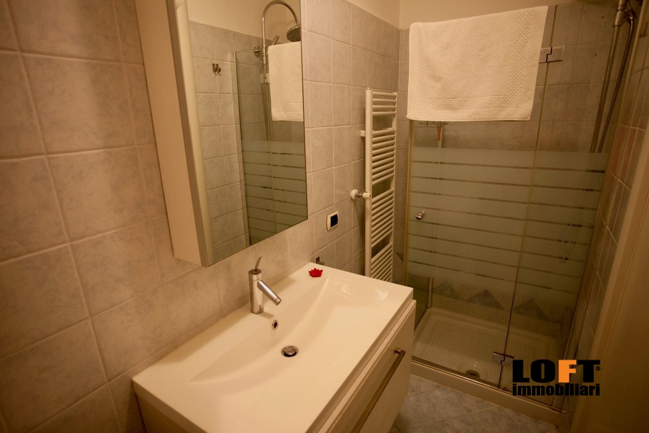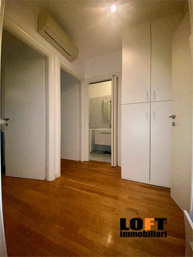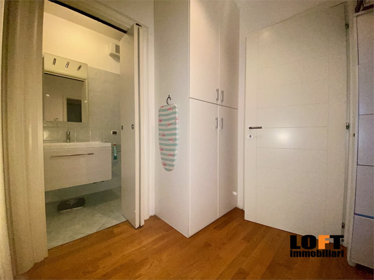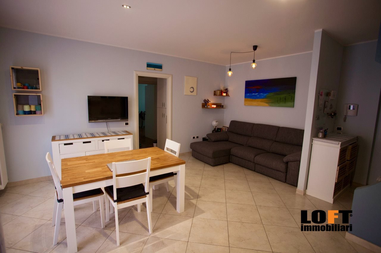 L'ingresso conduce direttamente nel piacevole soggiorno open space con cucina a vista ed accesso diretto alla loggia che dà sul giardino privato, ideale per pranzi e cene all'aperto o momenti di relax. Nel cortile privato si trova una comoda casetta per gli attrezzi.
