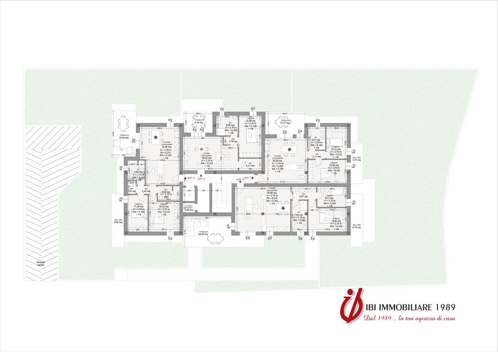 Soggiorno/cucina, doppi servizi, ripostiglio, camera matrimoniale di mq 15 circa ed una singola di mq 11,30 circa, ampia terrazza di mq 17 circa, balcone di mq 9 circa, Completano la proprietà, al piano interrato, doppio garage in larghezza ed una cantina. Finiture di pregio.