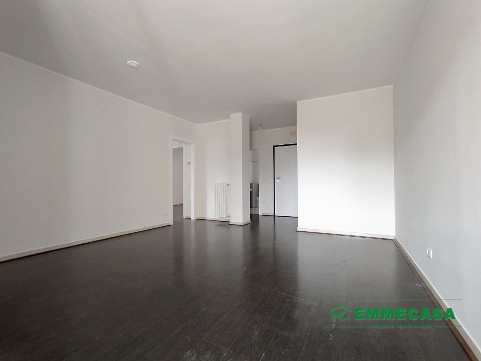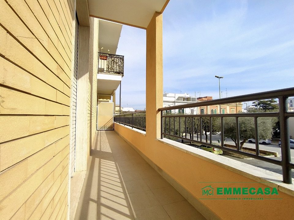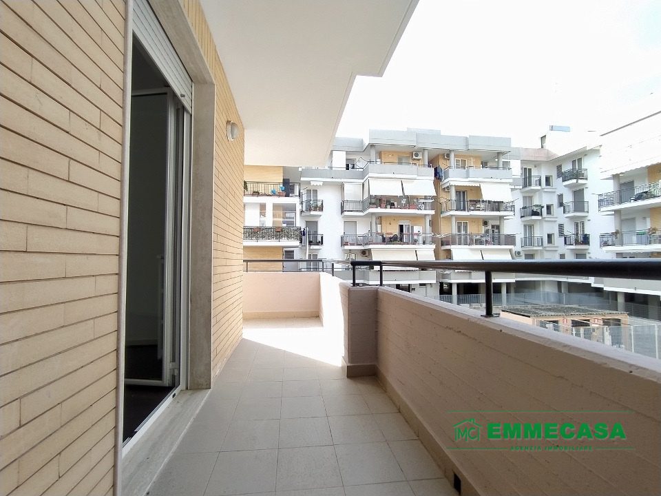 L'immobile copre una superficie di 90 mq. ca e si compone di ingresso su soggiorno pranzo a vista con angolo cottura, bagno di servizio, disimpegno che conduce alla zona notte ove si trovano la camera matrimoniale, la cameretta, e l'altro servizio. Questa soluzione è ubicata al primo piano in stabile con ascensore e si presenta in buonissimo stato. La porta d'ingresso è blindata, gli infissi sono in vetrocamera, il pavimento è in laminato parquet e la caldaia è stata cambiata da poco.L'appartamento è molto luminoso ed è circondato sui tre lati da un ampio balcone di 40 mq.ca,