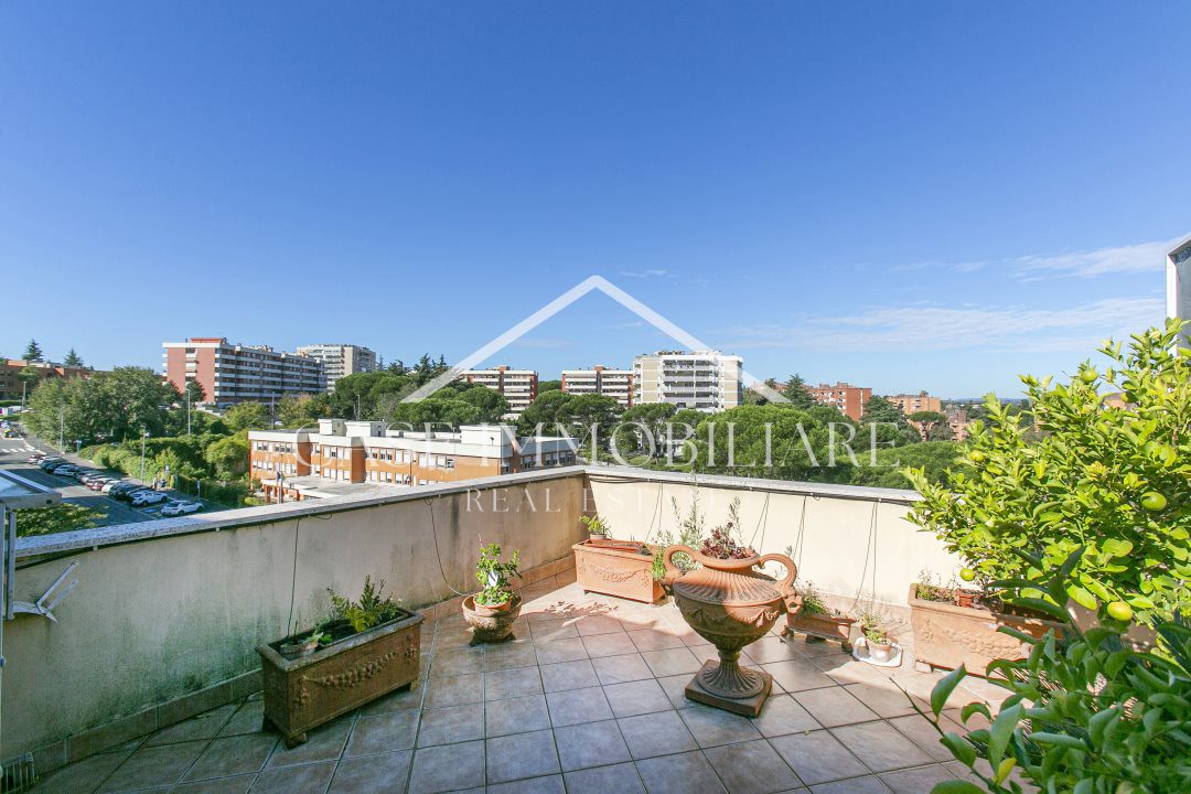 L'appartamento è all'ultimo piano di una palazzina di quattro, servita da ascensore. Questa proprietà si distingue per i suoi eccezionali spazi esterni e la sua luminosità, oltre che la tripla esposizione e la posizione dominante, garantendo una ottima luce naturale in ogni momento della giornata e un eccellente ricircolo d'aria.