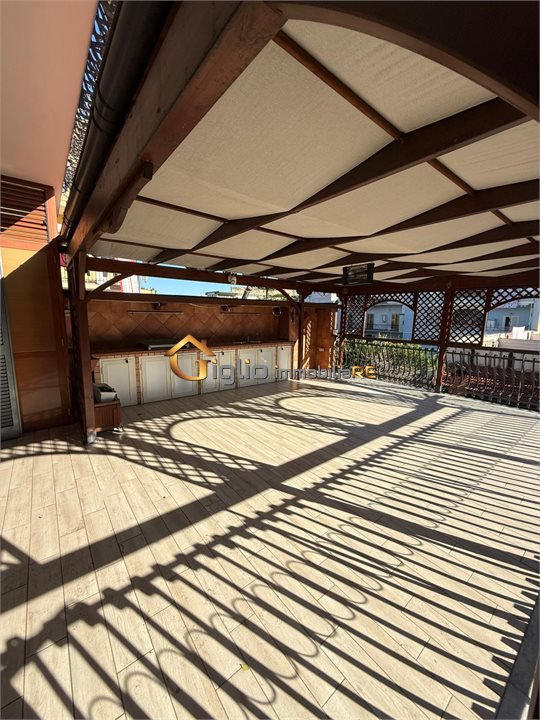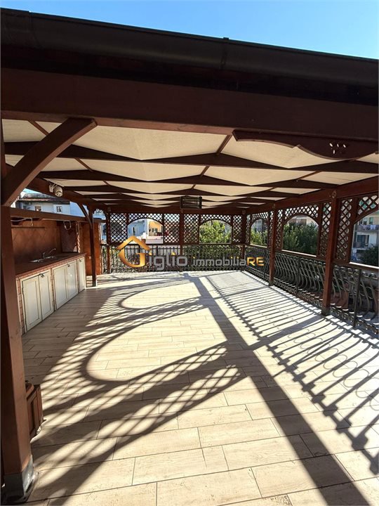 Terrazzo interno di circa 50 mq, con struttura in legno, cucina in muratura completa e comodo ripostiglio con attacco caldaia