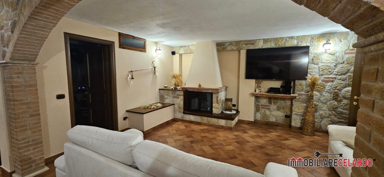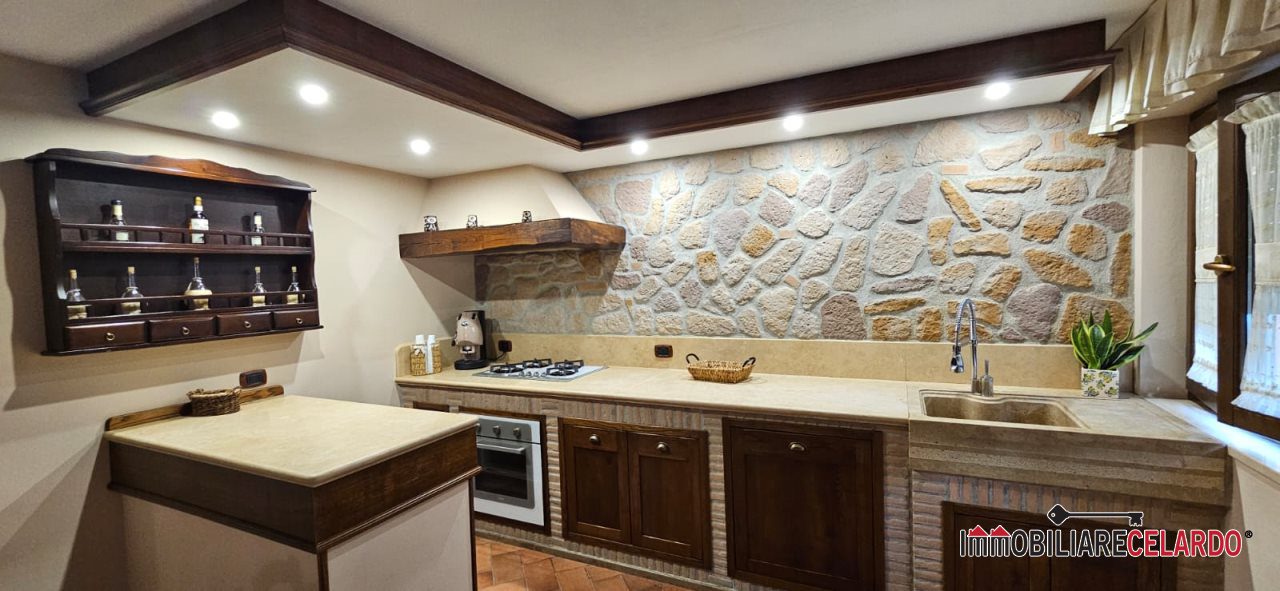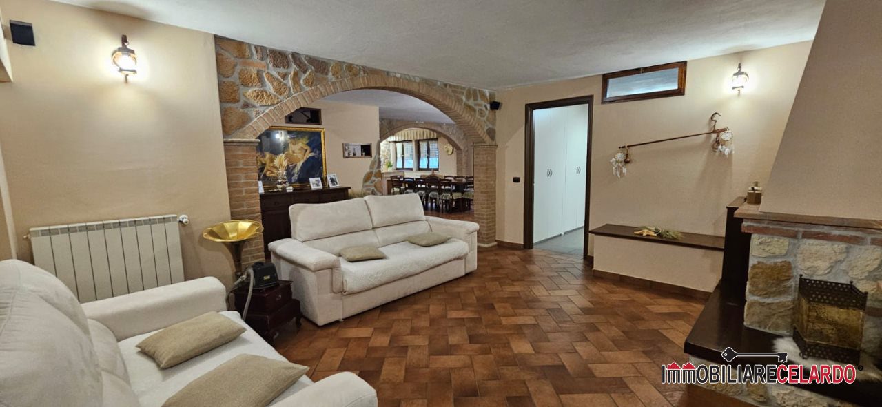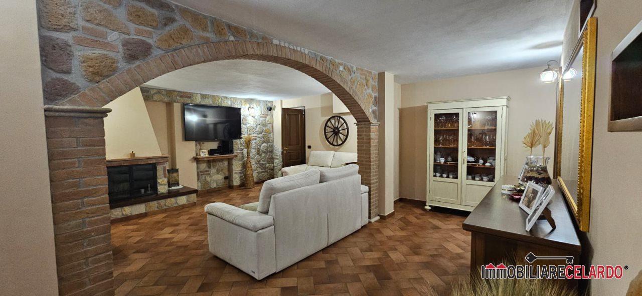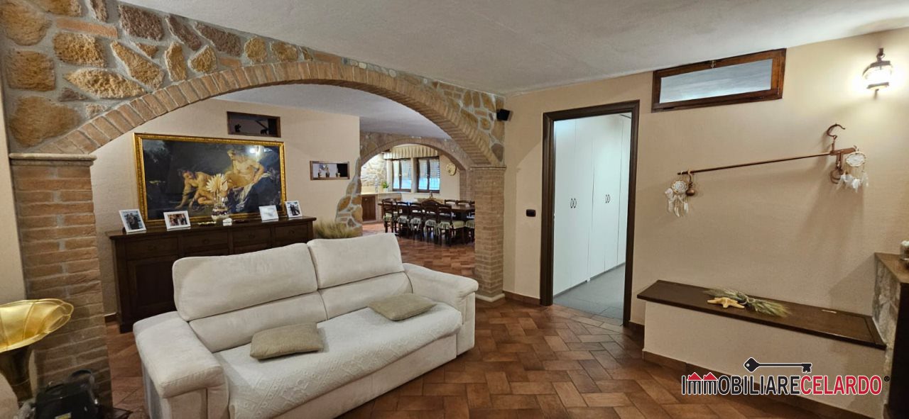 Al piano seminterrato, collegato internamente con l'abitazione, vi sono garage, rustico con camino e bagno, per un totale di mq 100.
