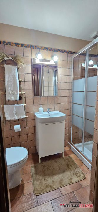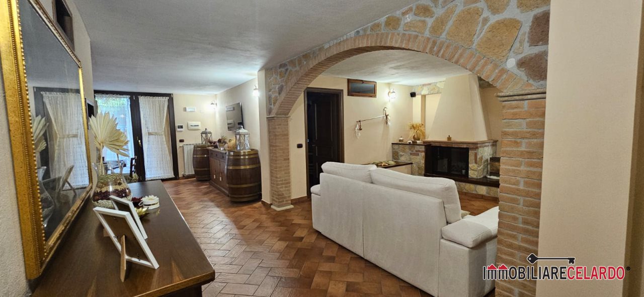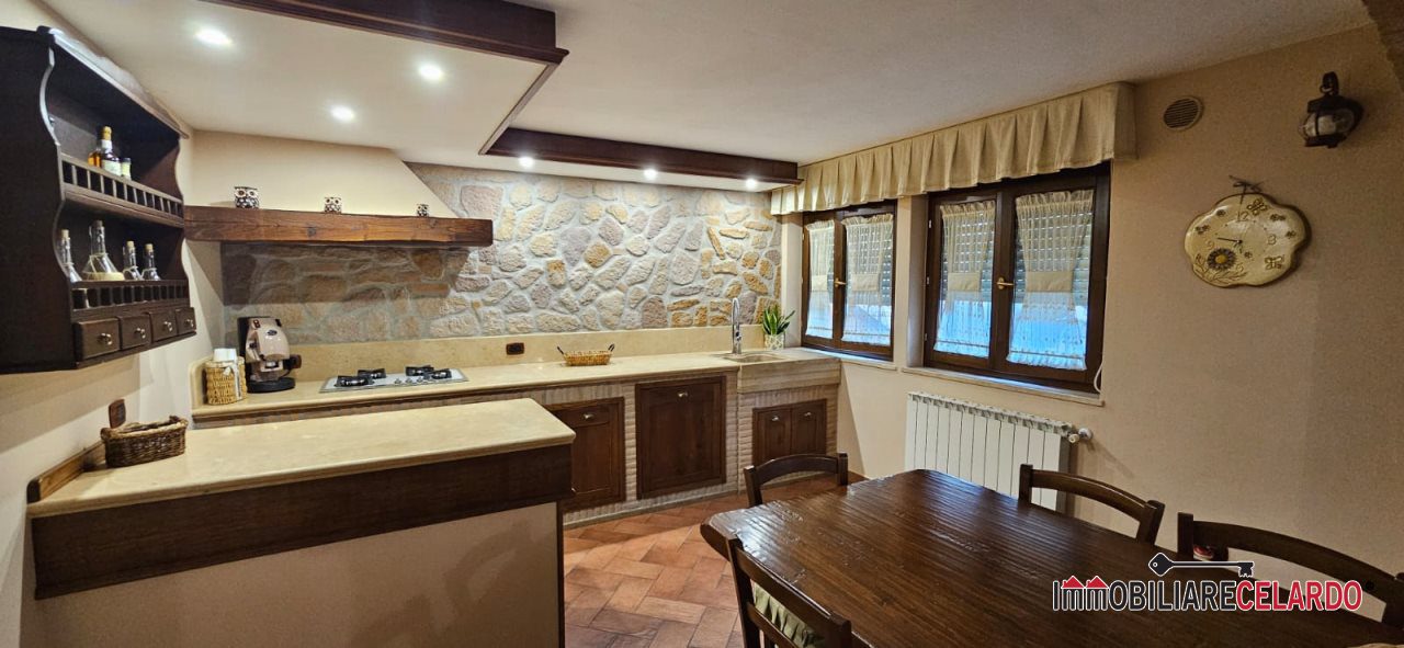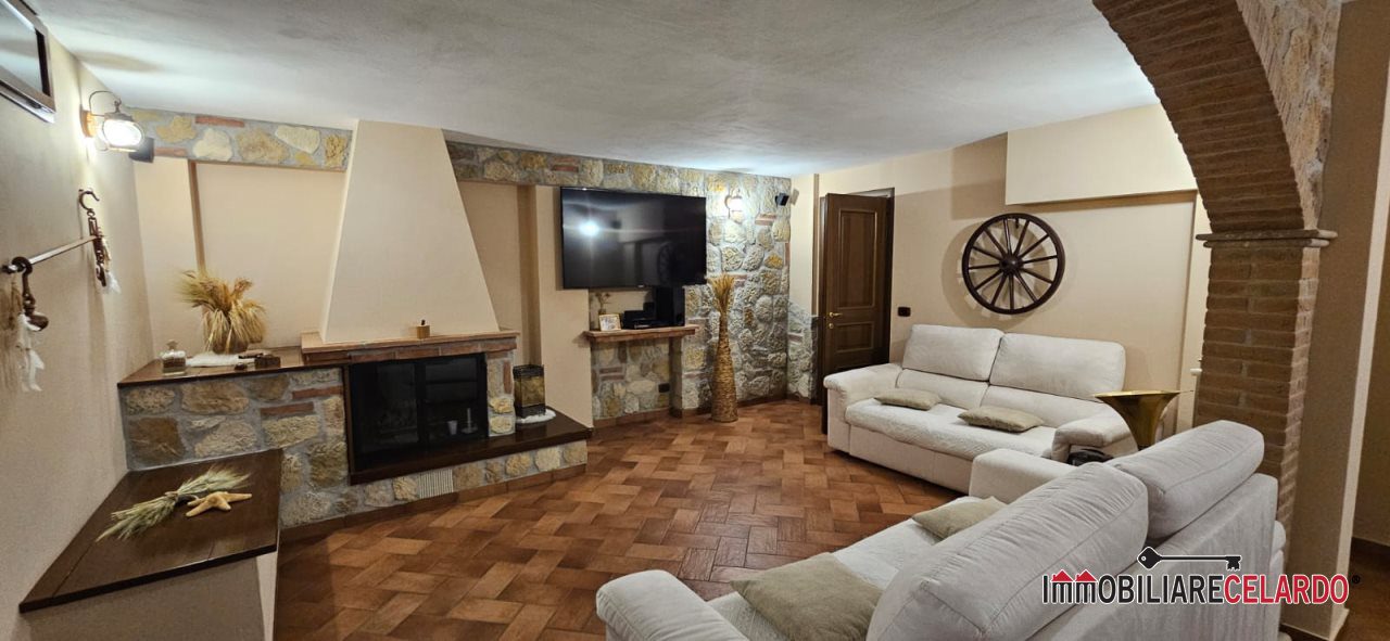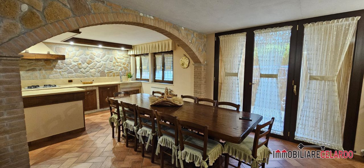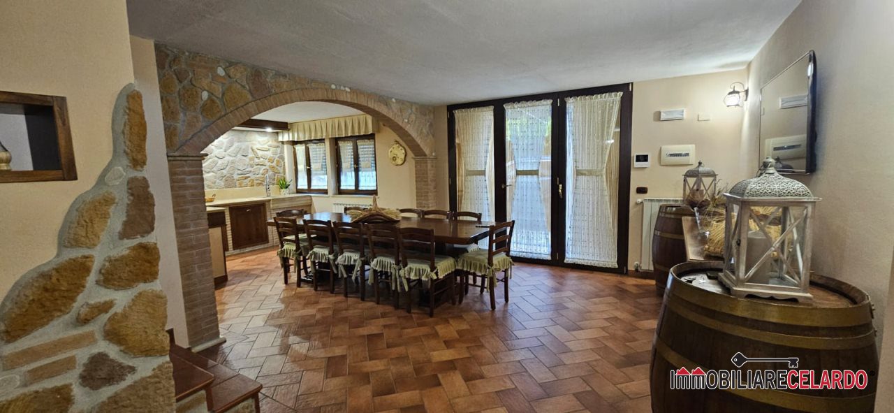 Al piano seminterrato, collegato internamente con l'abitazione, vi sono garage, rustico con camino e bagno, per un totale di mq 100.