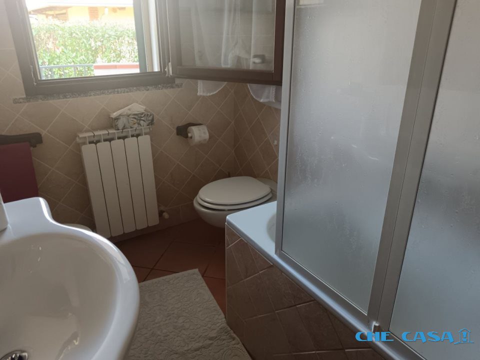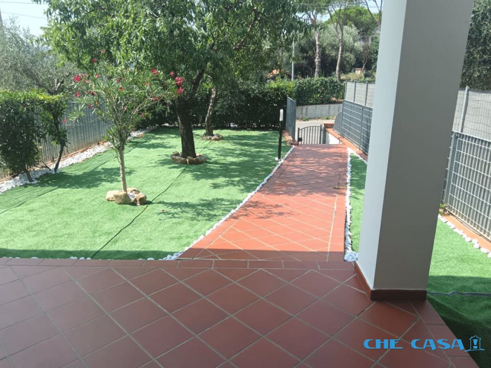 san clemente paese: appartamento al piano terra in piccola palazzina di 6 unità costruita negli anni '90. soggiorno di 36 mq con cucina open space e finestra panoramica, accesso al giardino esclusivo di 200 mq recintato e riservato. un bagno nella zona giorno con doccia e uno nella zona notte con…