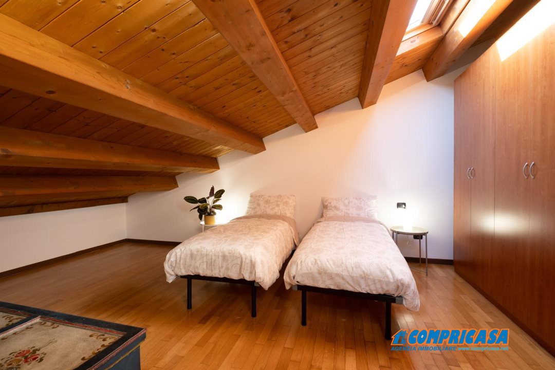 salendo troviamo una camera da letto matrimoniale e un altro bagno. Stupendo tetto mansardato con travi a vista;