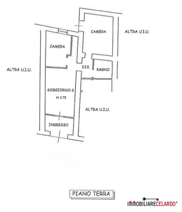 ingresso, soggiorno/ cucina, due camere e un bagno.