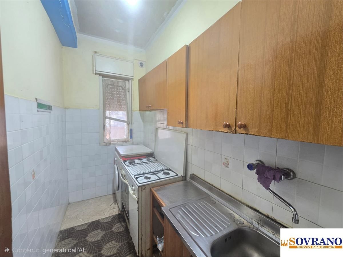 L'immobile, completamente da ristrutturare, presenta ambienti ampi e ben distribuiti: salone, due camere matrimoniali con finestra, cucina non abitabile, bagno con doccia e vasca, due balconi e posto auto scoperto assegnato.