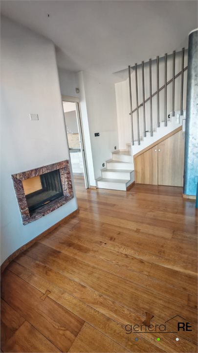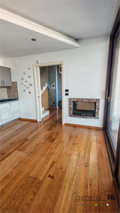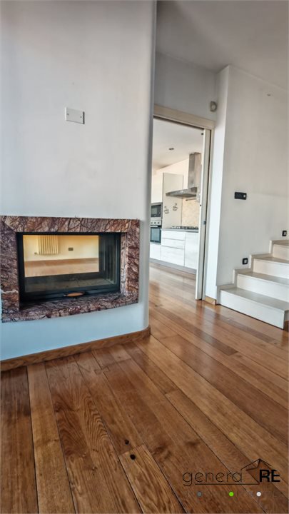 Cucina abitabile con grande finestrone scorrevole, cucina inclusa, e suggestivo camino con doppia apertura su soggiorno e cucina, un bagno di servizio e serrande elettriche. Zona notte, piano mansardato abitabile con recupero abitativo (altezza minima 2,20 m).