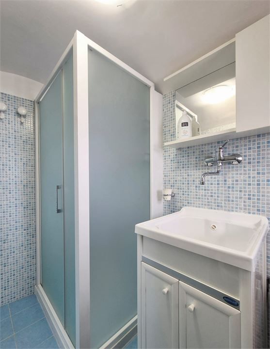 Appartamento composto da sala-cucina, ripostiglio, camera matrimoniale con split aria condizionata caldo e freddo, bagno totalmente ristrutturato con scaldabagno. Le finestre della camera e della cucina hanno le zanzariere.