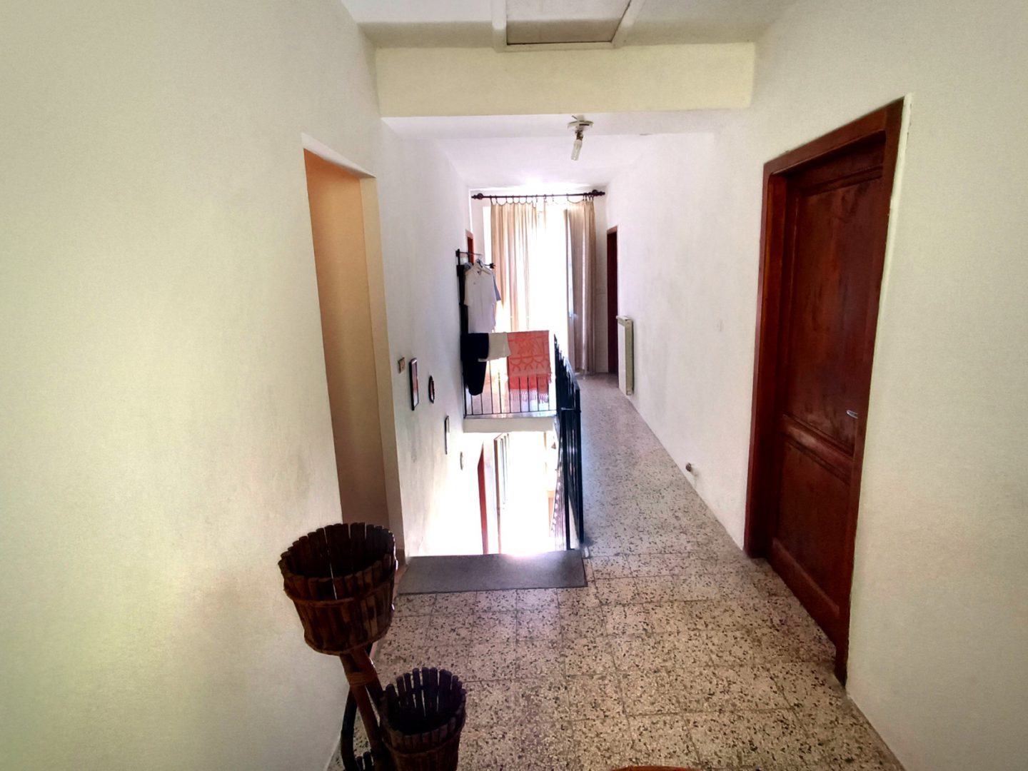 La casa è su due livelli collegati da ampia scala interna e ci sono tre camere, ampia cucina, ampio soggiorno, cantina. All'esterno c'è un piccolo manufatto in mattoni con un altro bagno di servizio per quando si è nel giardino.