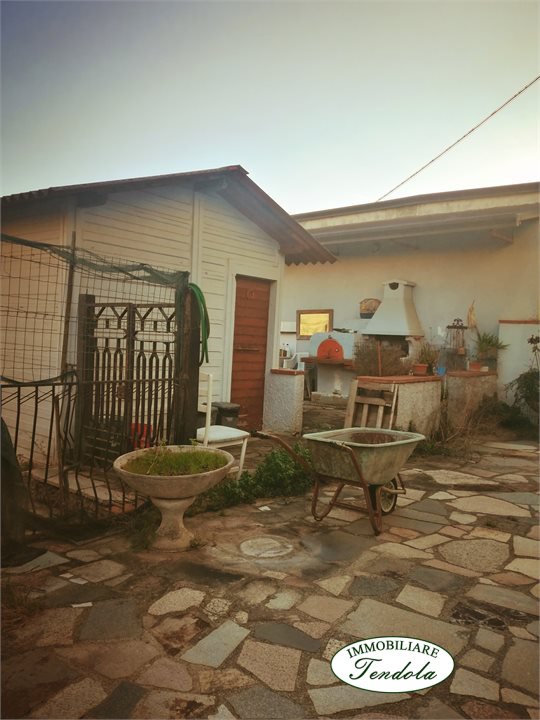 Corte pavimentata con due posti auto,cantina fuori terra di 30 mq ca,accesso a giardino di 500 mq ca tutto recintato.