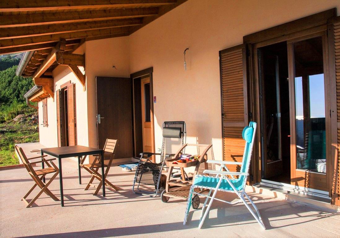 Dal parcheggio si accede direttamente alla veranda d'ingresso da cui si gode di una vista impagabile, e attraverso la porta finestra si accede al piano terra della villa, costituito da un'ampio soggiorno, una grande cucina, un ripostiglio, un antibagno, un bagno ed una grande camera matrimoniale.