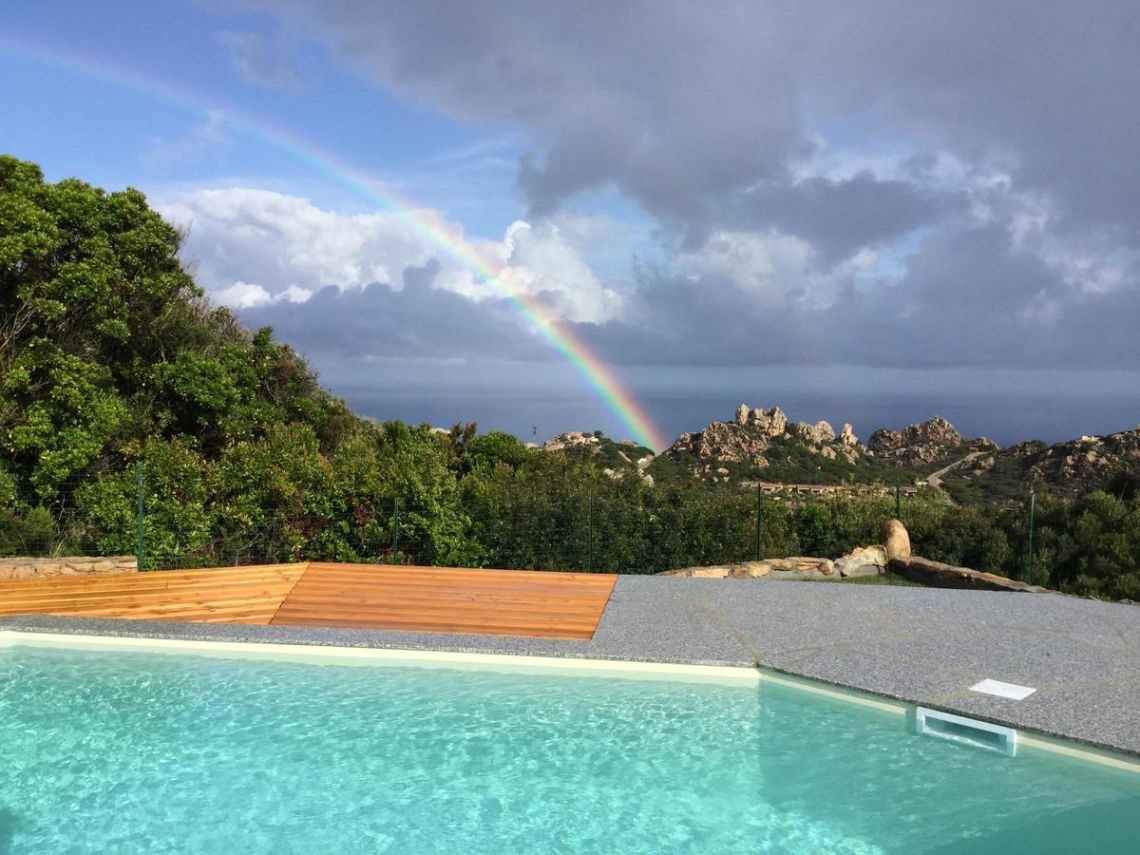 La proprietà ha un'esposizione al sole durante tutta la giornata e gode di spettacolari tramonti. Una delle poche costruzioni di Costa Paradiso su un unico piano con accesso alla casa da due entrate con diversi posti auto. Giardino recintato.