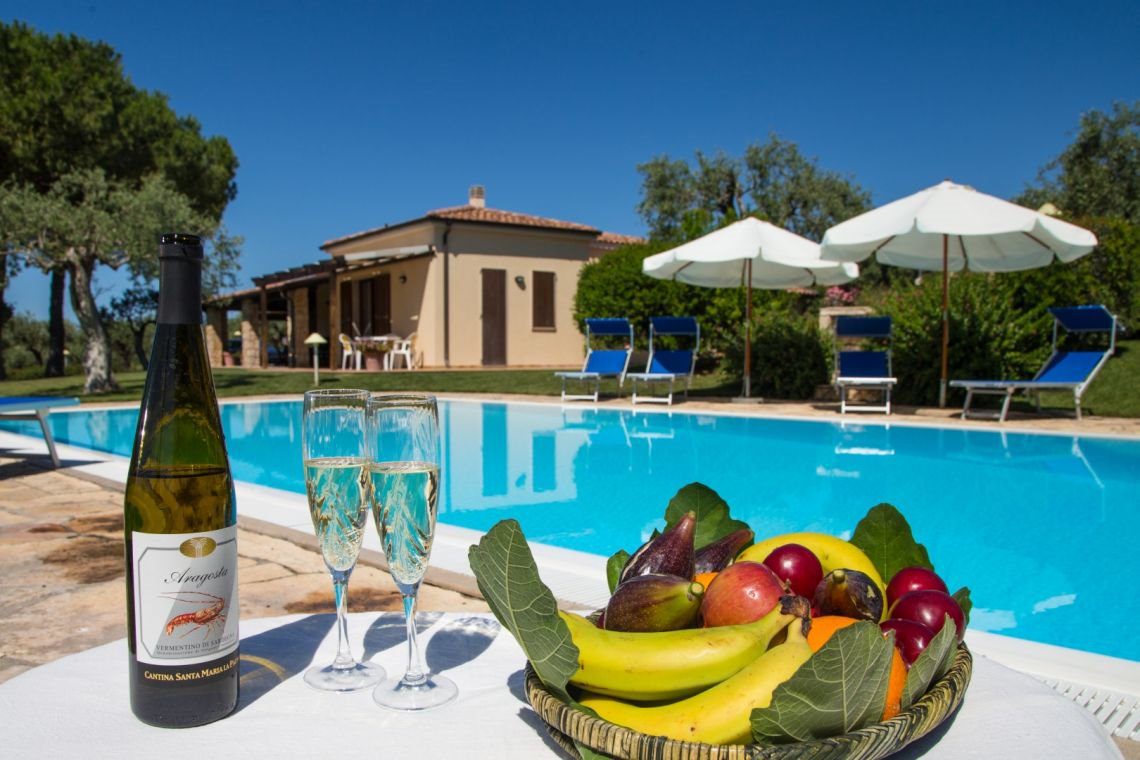 Completano la proprietà una tettoia per ricovero auto, impianto fotovoltaico di 6 KW, e posti auto. Aria condizionata in ogni ambiente. - Maggiori Dettagli: Vista campagna, Vicino ai servizi, Aeroporto entro 1 ora, Terrazza, Alberi di ulivo, Piscina privata, Caminetto, Forno a legna, Barbecue, Veranda, Accesso con l'auto
