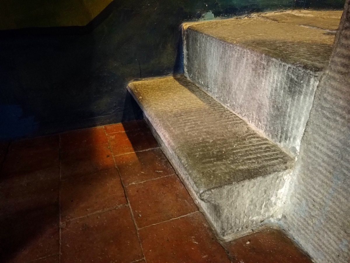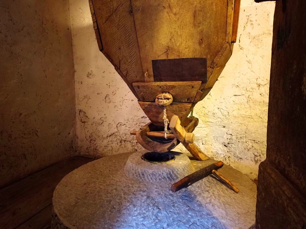 Scendendo nel seminterrato troviamo ambienti con le antiche macine in pietra.
