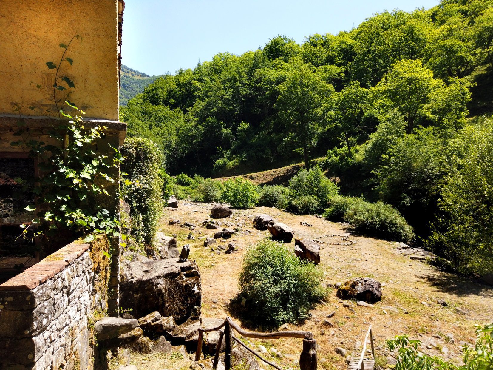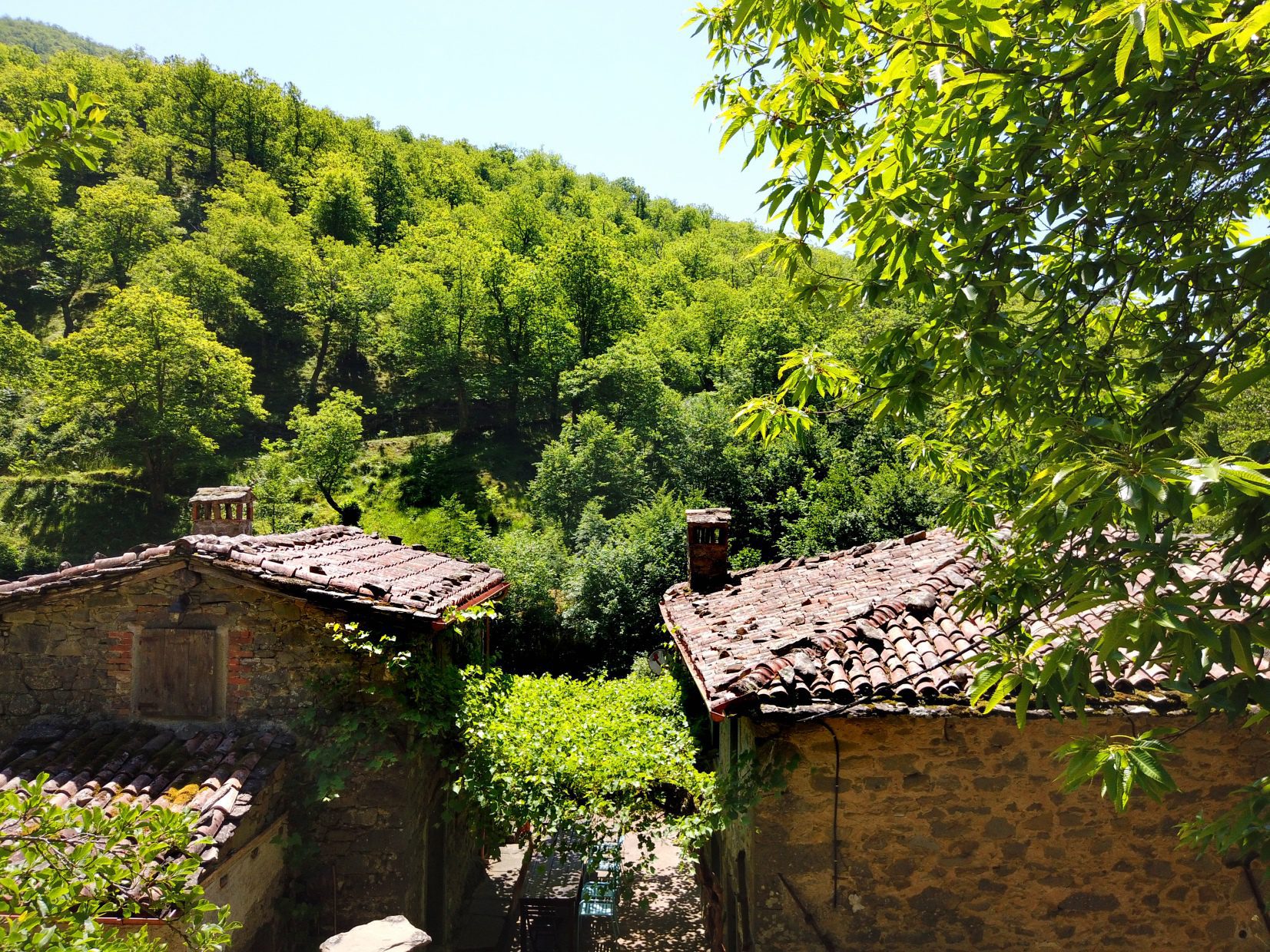 Per l'intero percorso si incontrano solo castagneti secolari e antichi essicatoi di castagne in pietra.