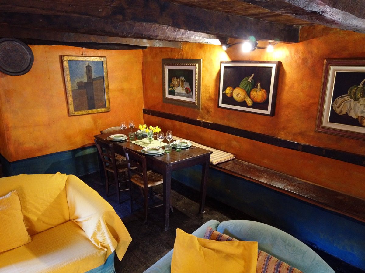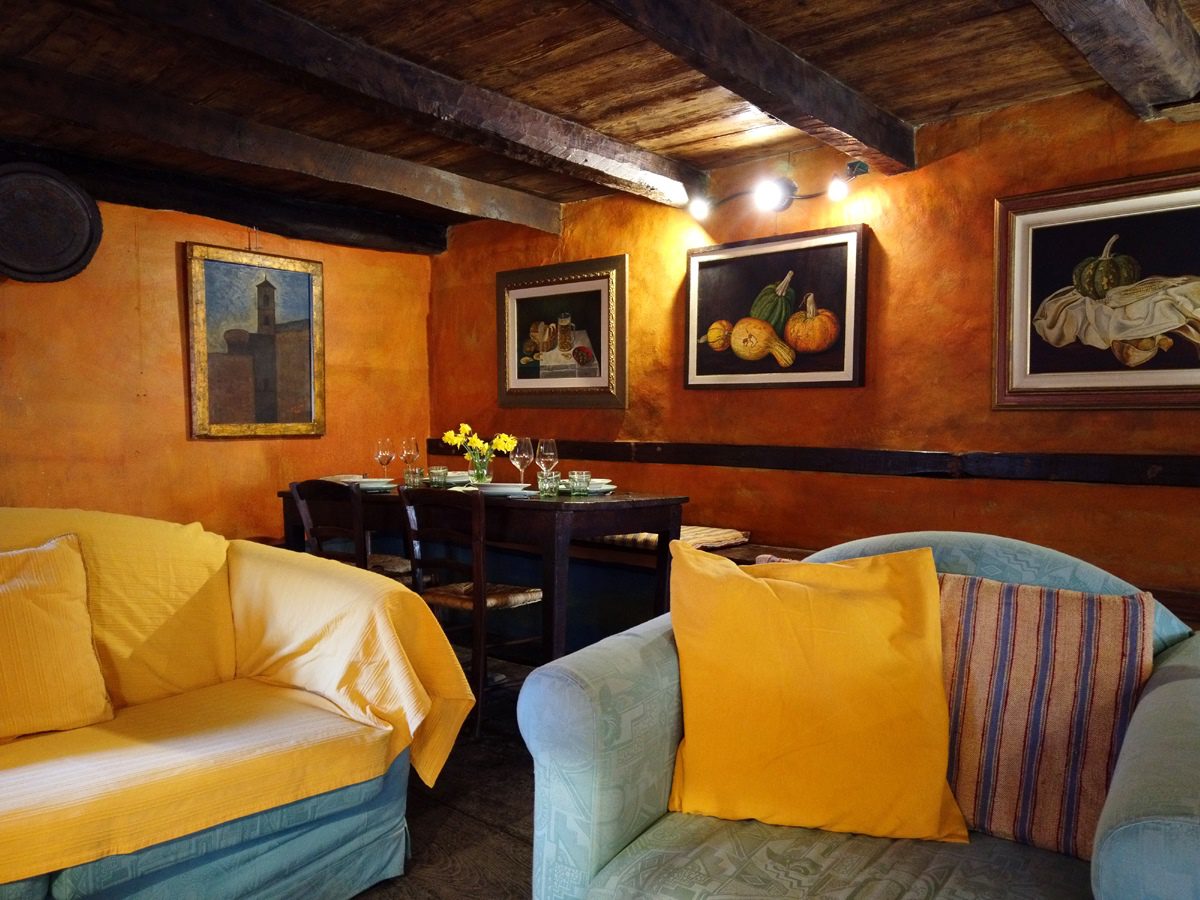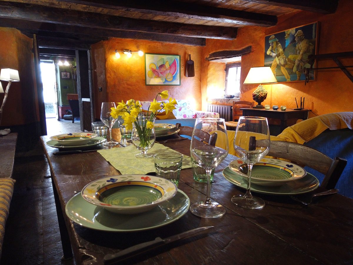 Entrando nel mulino (piano terra) si trova subito la saletta con l'antico camino (perfettamente funzionante) e con le scale che conduco al seminterrato (antiche macine/cantine) e al piano primo.