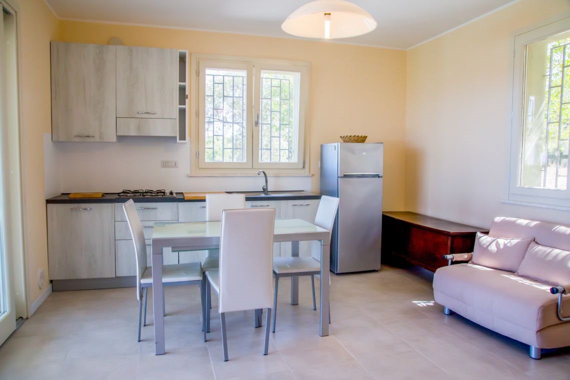 La proprietà risulta attualmente divisa in due unità abitative con ingresso indipendente. Da una parte un bilocale con soggiorno/cucina, bagno, camera matrimoniale e ripostiglio (nel vano ripostiglio basta aprire una parete per riunificare i due appartamenti).