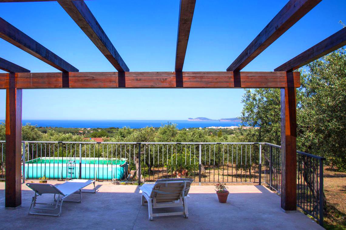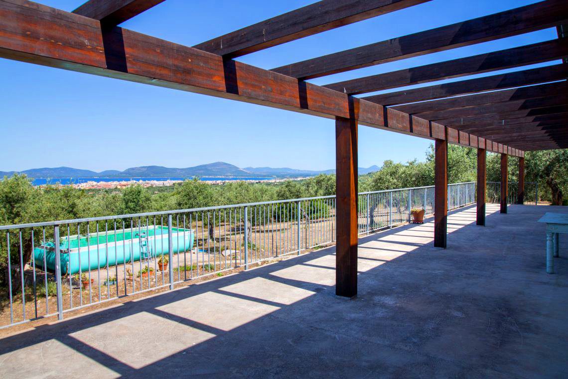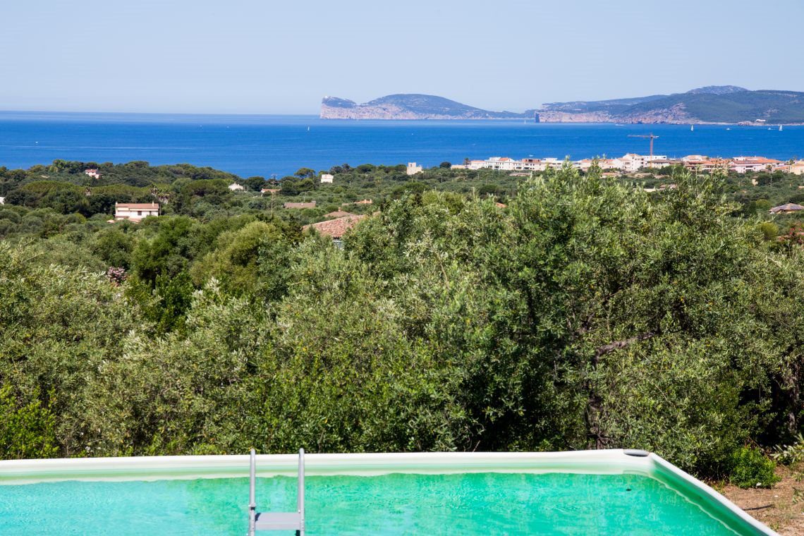 La villa è situata a soli km 3,5 dal centro di Alghero, circondata da un ettaro circa di terreno con oliveto (circa 150 piante) e gode di ampi spazi interni ed esterni, con un'ampia terrazza di mq 100 con meravigliosa vista sulla città e del mare.