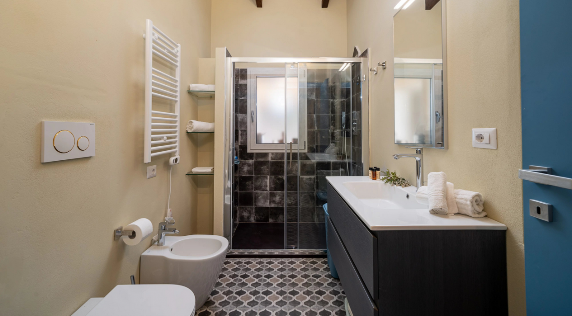 Nello stesso piano la zona notte con due camere da letto matrimoniali con matrimoniali (di cui una con bagno privato "en suite") ed altra camera con due letti singoli.