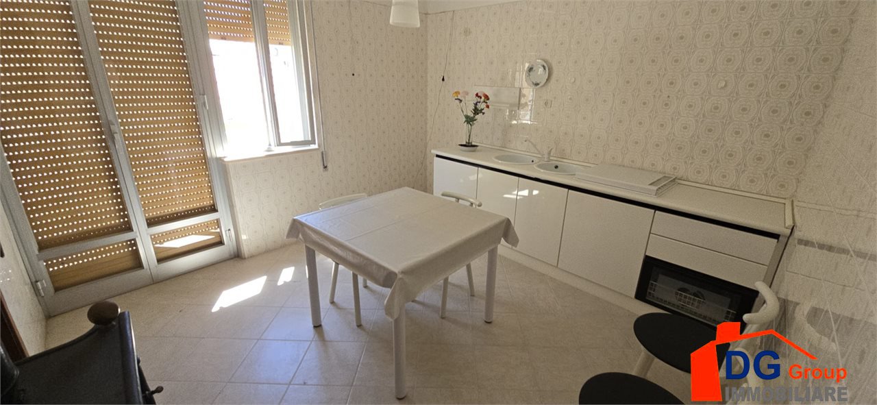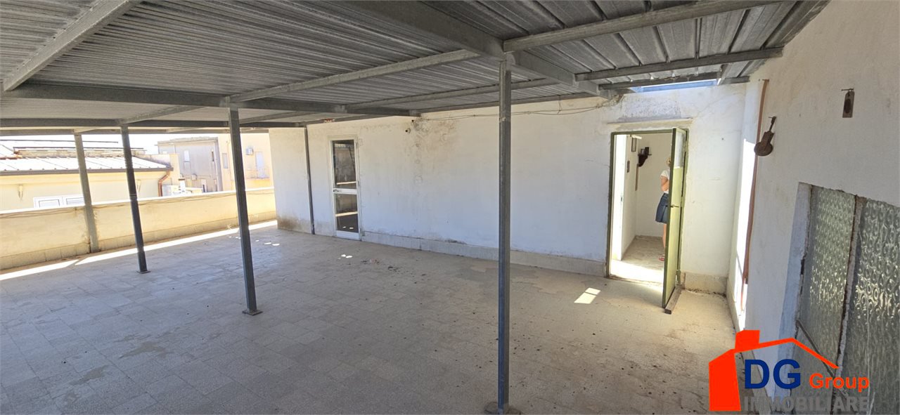 Il piano terra è composto da un unico ambiente attualmente adibito a garage. Attraverso una scala rifinita in marmo si accede al primo piano, dove si sviluppa la zona abitativa principale: ingresso, cucina abitabile, tre camere da letto ben illuminate grazie alla tripla esposizione dell'immobile, un bagno con doccia e un disimpegno che collega in modo ordinato tutti gli ambienti.