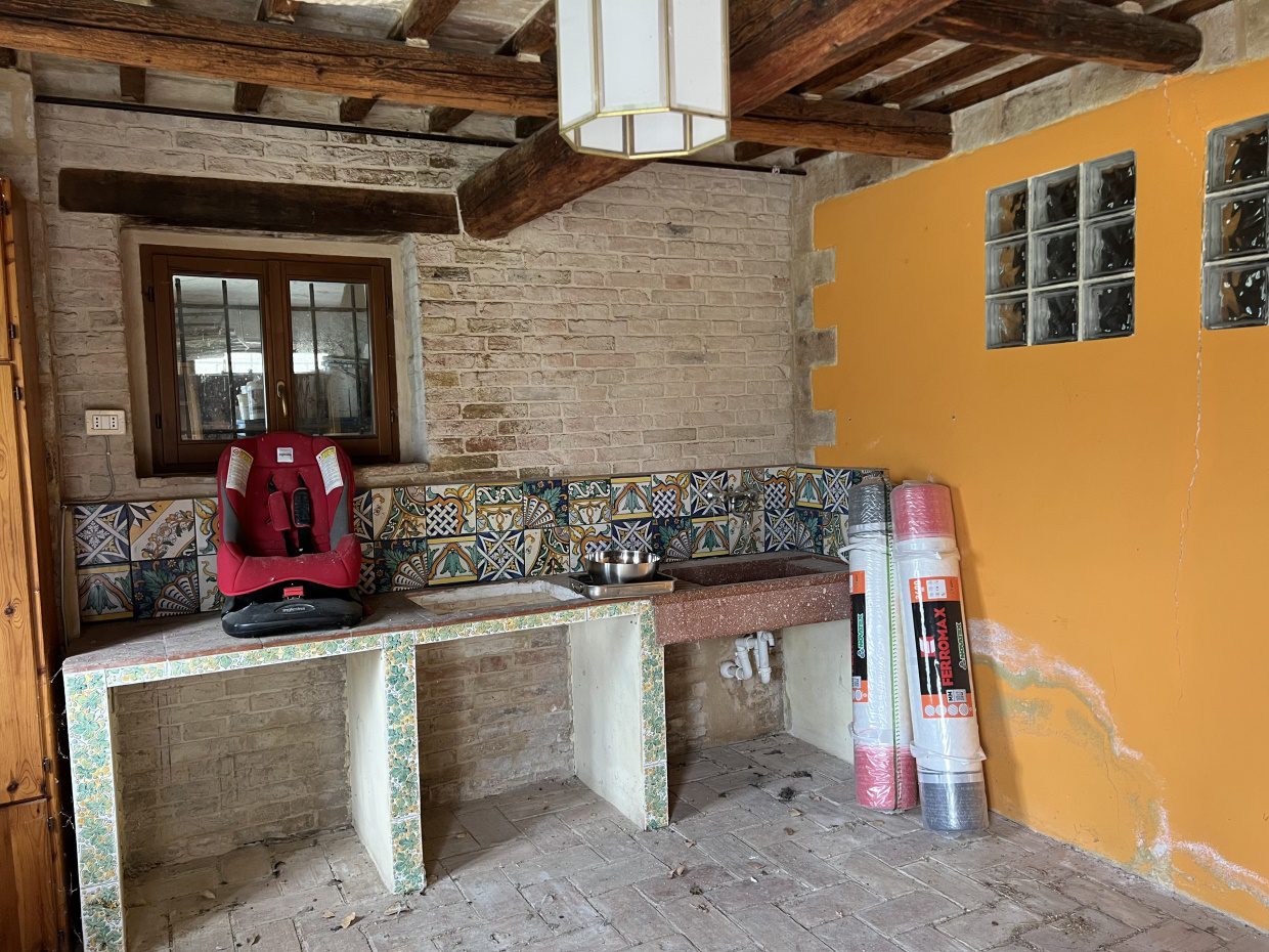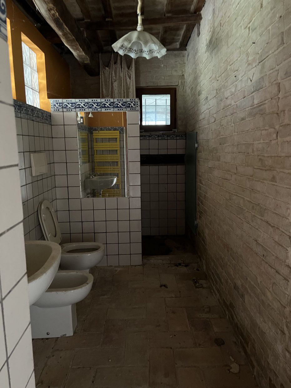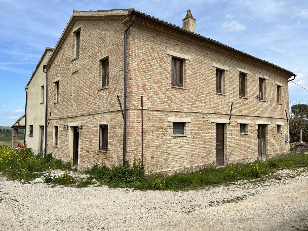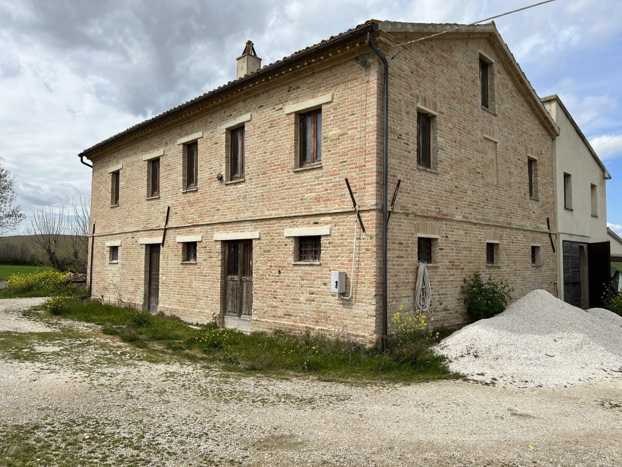 La proprietà si raggiunge percorrendo una piacevole strada bianca di campagna poco frequentata ed Immersa nelle dolci colline a circa 25 km dal mare. in posizione tranquilla ed appartata, troviamo questa caratteristica casa in mattoni faccia vista, circondata da alberi di ulivo secolari e ciliegi. Al piano terra troviamo un piccolo appartamento composto da una cucina-soggiorno, camera e bagno con doccia, grande stalla, cantina, ricovero attrezzi e ampio pollaio; al primo piano ampia cucina, dispensa, quattro camere, bagno e ampio ripostiglio. Nel terreno è presente un grande ricovero attrezzi di circa 65 mq, che può essere ristrutturato è adibito a dependance. La proprietà è stata consolidata ed è in buone condizioni strutturali. Ottima per un'attività di B&B o per una grande famiglia. - Maggiori Dettagli: Vista panoramica, Vista campagna, Aeroporto entro 1 ora, Giardino, Alberi da frutto, Alberi di ulivo, Piscina possibile, Caminetto, Forno a legna, Corte privata, Veranda, Accesso con l'auto, Garage