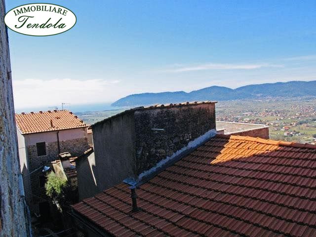 ortonovo nel grazioso borgo medioevale di nicola,da dove si gode di una meravigliosa vista mare ,terratetto libera su 3 lati,cosi' composta:p.terra ingresso indipendente, un vano con bagno;p1 soggiorno con zona cottura,terrazzino con servizio;p2 una camera