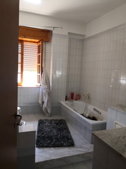 Appartamento Primo Piano mq 120, in soluzione semi-indipendente(Stabile di 2 unità immobilari Piano terra, Primo Piano) composto da ingresso/salone,corridoio, 2 camerette, camera da letto, bagno con vasca, W.C. con box doccia, cucina abitavile con verandina chiusa.